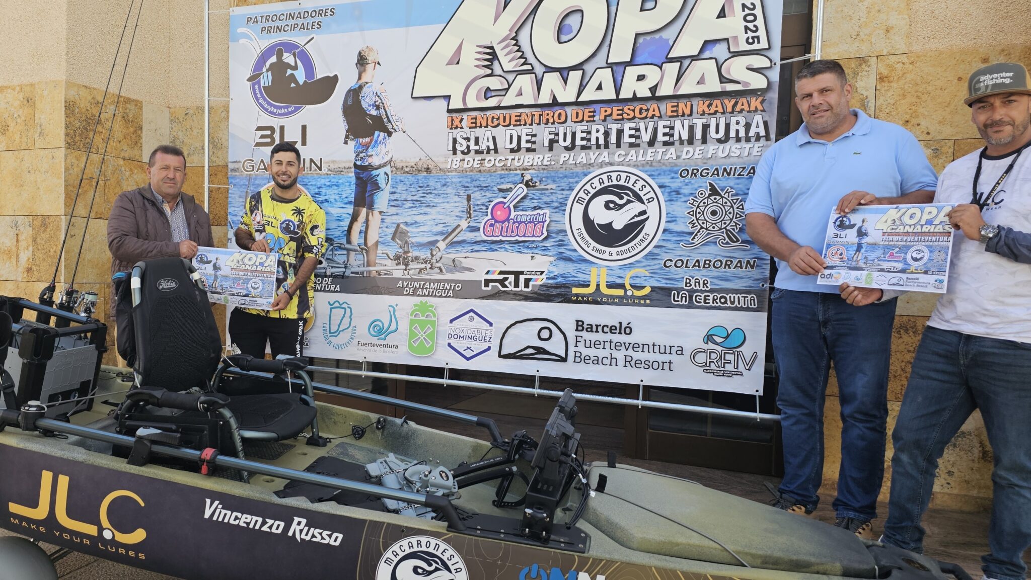 Este jueves 9 de octubre por la mañana, se ha presentado en el Ayuntamiento de Antigua la 4ª Kopa Canarias y IX Encuentro de Pesca y Suelta en Kayak Isla Fuerteventura que se celebra en Caleta de Fuste el sábado 18 desde las 08:00 y hasta las 14:00 horas. La presentación ha sido protagonizada por los organizadores representantes del Club Maho Kayak, Fran Díaz y Vicenzo Russo, acompañados del alcalde de Antigua, Matías Peña García y el concejal de Deportes, Samuel Torres Mesa, y el consejero insular de área del Cabildo de Fuerteventura, Luis González.