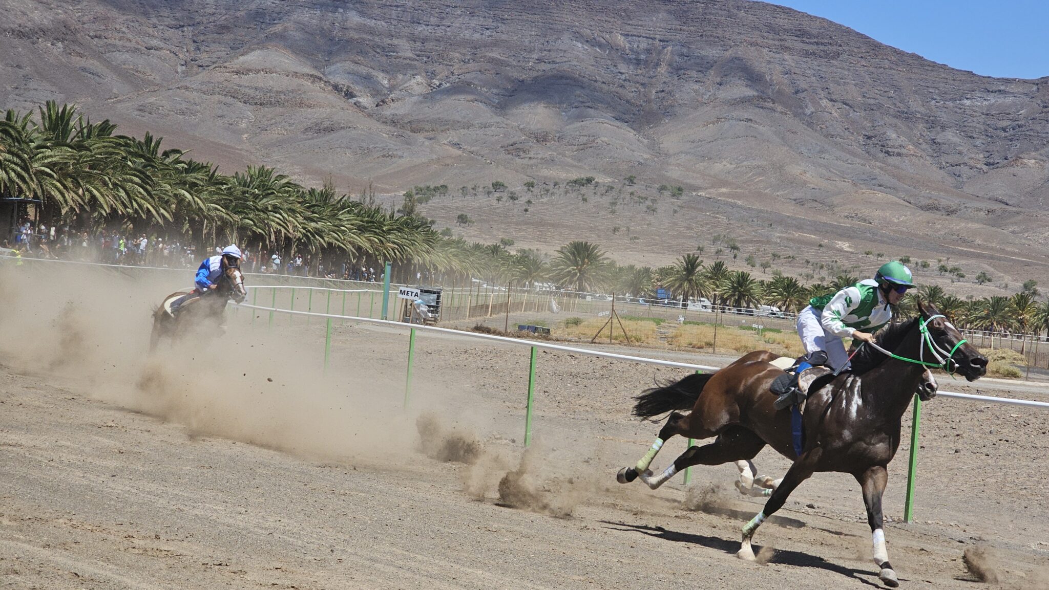 Esta nueva y emocionante cita de velocidad ecuestre, detalla el concejal de Deportes, Samuel Torres, ofrecerá carreras con distancias de 1.200, 1.400, 1.600 y 2.000 metros, que podrán disfrutarse desde la sombra del palmeral limítrofe con la pista, o en el graderío con pérgola, acondicionado en la parte alta para visionar como toman los caballos y sus jinetes cada recta y curva.