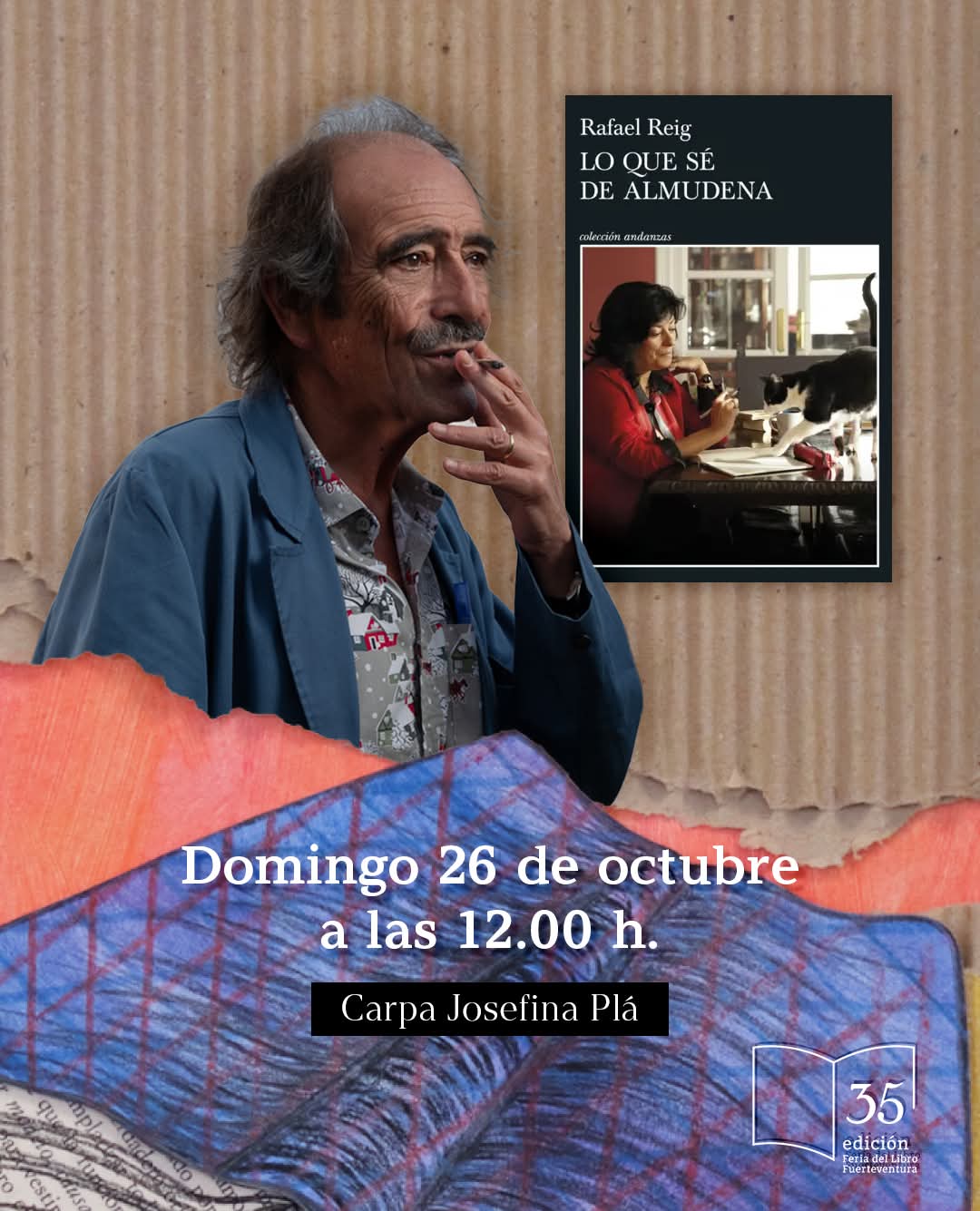 El conocido actor Pepe Viyuela será, finalmente, el responsable de poner el punto y final a esta edición de la Feria del Libro con un espectáculo titulado ‘La risa en verso’. Estará acompañado por el barítono Luis Santana. La cita será a las 21:00 horas en la Carpa Josefina Plá.