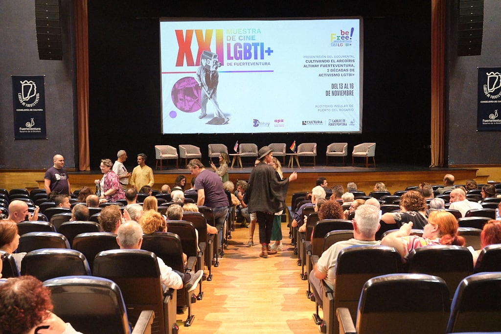 ALTIHAY Fuerteventura estrenó el pasado 15 de noviembre en el Auditorio Insular de Puerto del Rosario su documental ‘Cultivando el arcoiris. ALTIHAY Fuerteventura, 2 décadas de activismo LGBTI+’. A la ocasión acudieron decenas de personas y cargos públicos que se unieron a la celebración de veinte años de actividad defendiendo los derechos de las personas LGBTI+, su memoria histórica y calidad de vida en la isla de Fuerteventura. Esta proyección se realizó en el marco de la XXI Muestra de Cine LGBTI+ de Fuerteventura, promovida desde ALTIHAY en colaboración con la Cinemateca Pedro Zerolo y el apoyo del área de cultura del Cabildo de Fuerteventura.