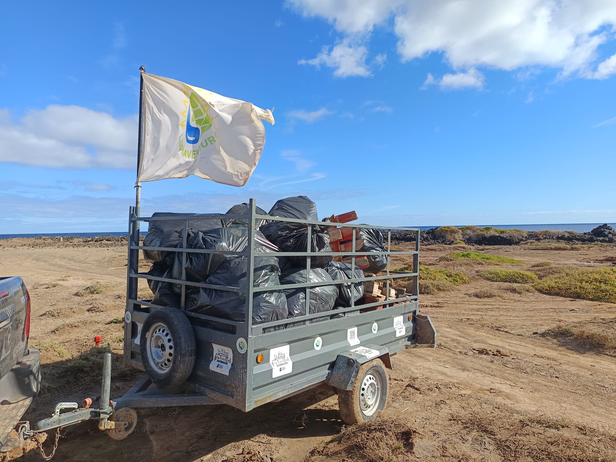 La basura y residuos tirados al mar, la marea la trae a la costa y Limpiaventura la recoge, afirma el concejal de Medio Ambiente, Juan Cabrera, la asociación aporta lo principal, el compromiso medioambiental de sus voluntarios y voluntarias, en una actuación que respaldamos facilitando el desplazamiento, aportando material como guantes o bolsas y disponiendo una cuba para retirar los cientos de kilos de basura acumulada.