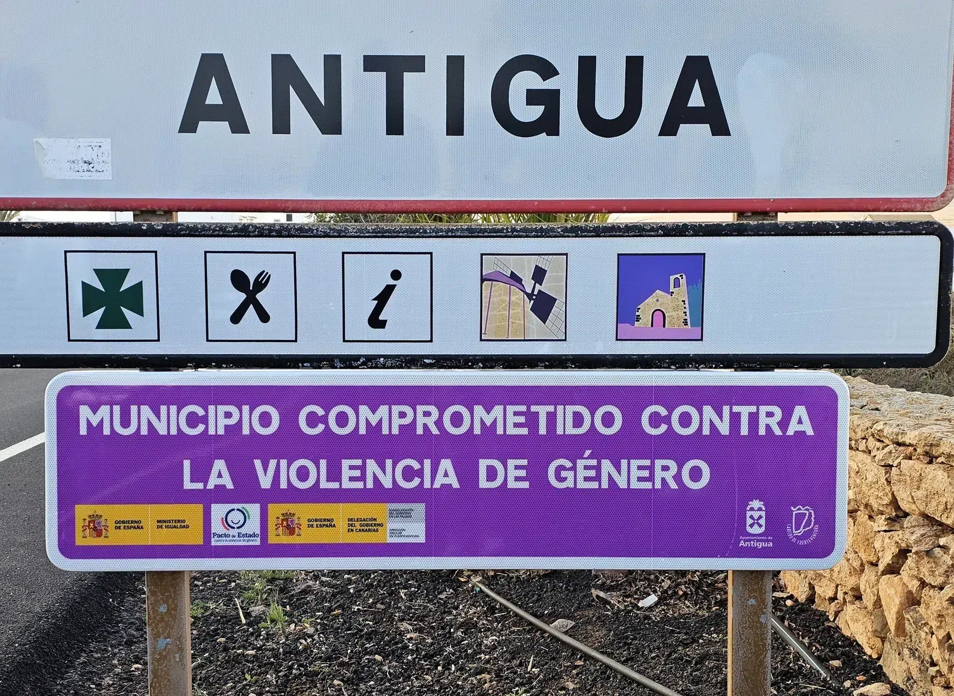La Directora Insular, María Jesús De La cruz, aplaude el gesto de Antigua, sumándose a una campaña que la Dirección Insular del Estado extiende a todos los municipios, visibilizando este compromiso con señales viales y un mensaje de rechazo a la violencia de género.