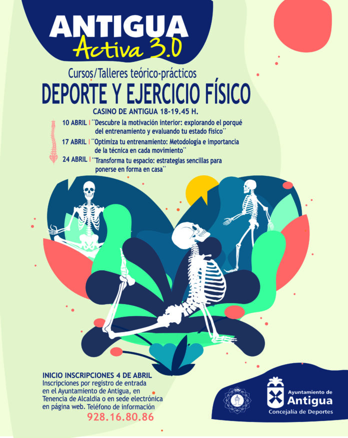 Este mes de abril se desarrollan tres talleres o cursos diferentes, todos y cada uno de ellos de inscripción gratuita, siempre por Registro de Entrada en el Ayuntamiento de Antigua, Tenencia de Alcaldía en Caleta de Fuste o por sede electrónica en la web www.ayto-antigua.es