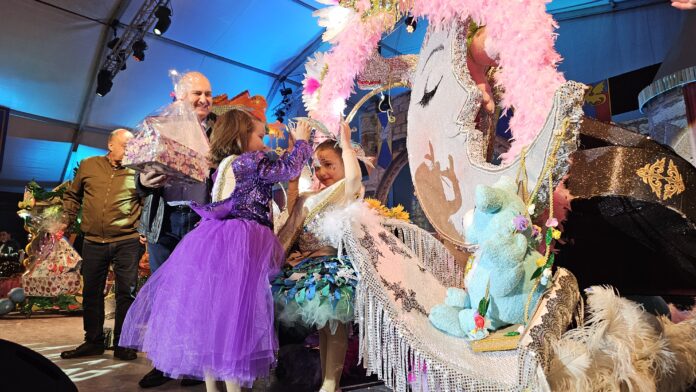 La Reina del Carnaval 2023, Adrina Monagas, coronó a la nueva Reina del Carnaval de Antigua 2024, haciéndole también entrega con el concejal de Festejos, Agustín G. Rodríguez, de una gran caja de regalos y sorpresas.