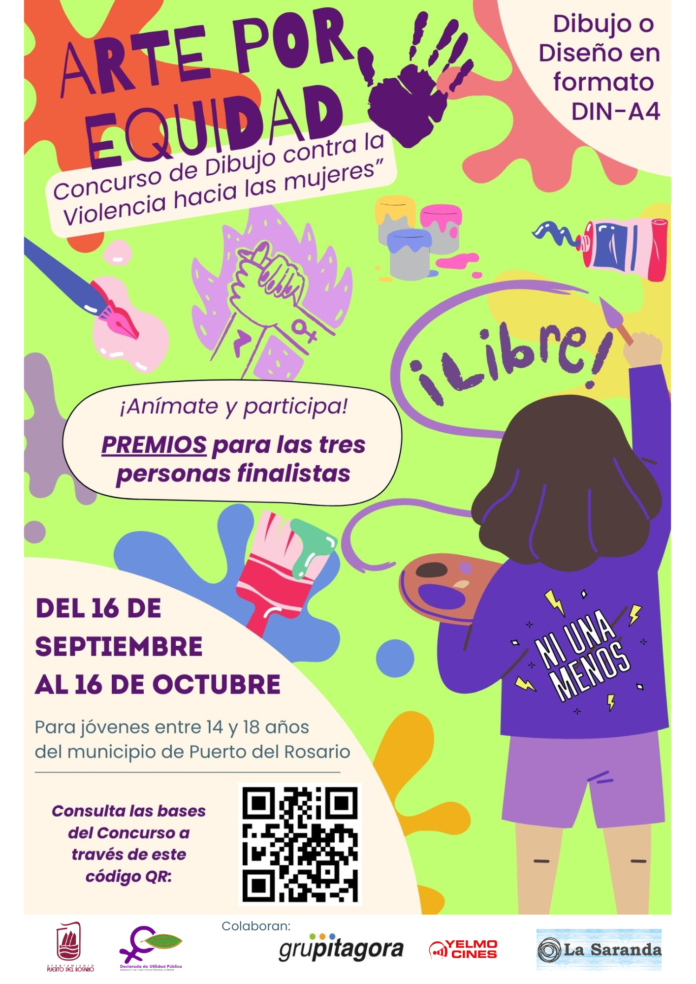 Con motivo del Día Internacional para la Eliminación de la Violencia contra las Mujeres (25-N), el Ayuntamiento de Puerto del Rosario, a través de la Concejalía de Igualdad, Diversidad y LGTBI junto con la Federación de Asociaciones de Mujeres Arena y Laurisilva (FAMAL), pone en marcha el I Concurso “Arte por la Equidad: Concurso de Dibujo contra las Violencias hacia las Mujeres”, el cual se ejecutará del 16 de septiembre al 16 de octubre.