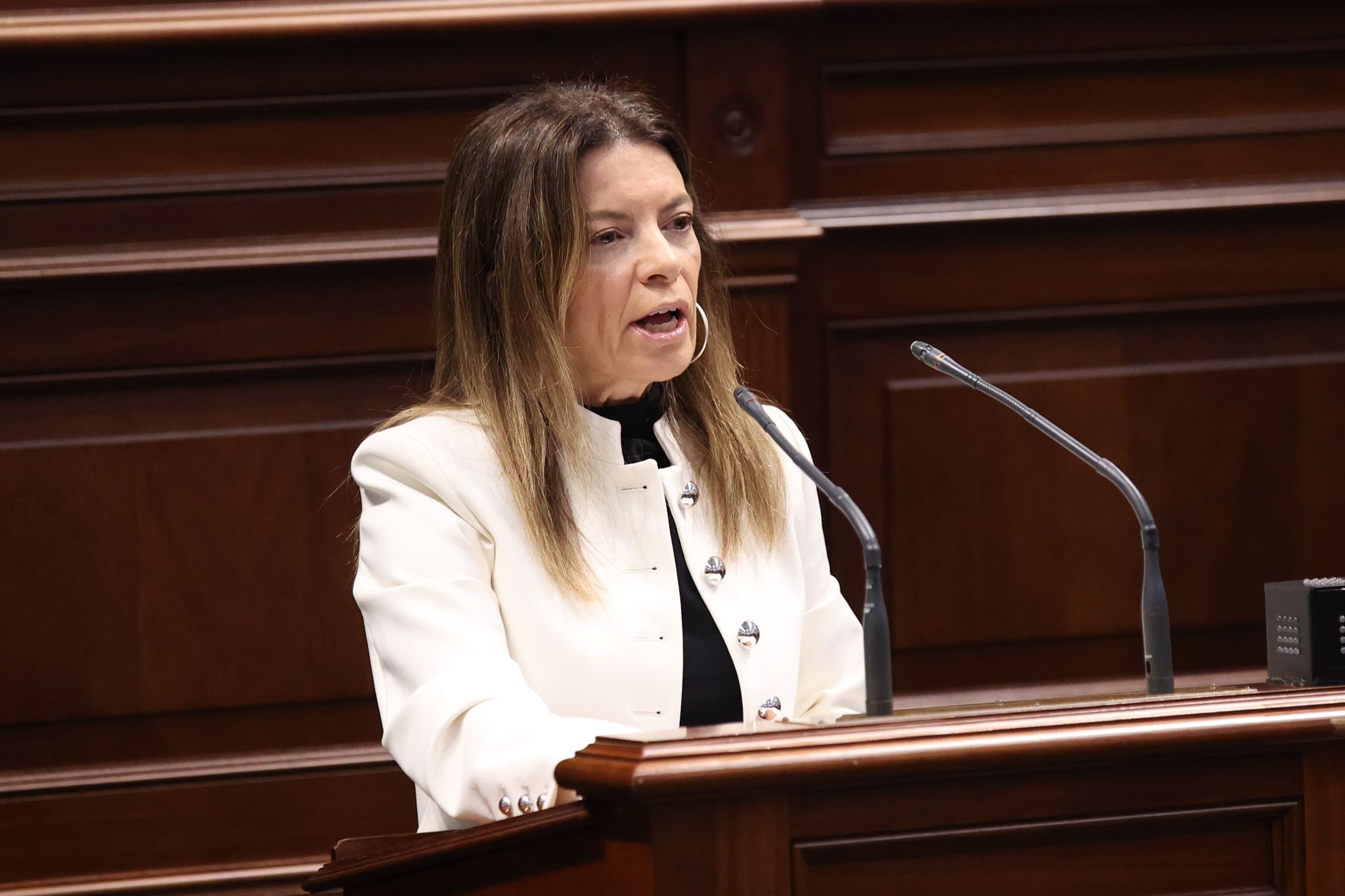 La diputada nacionalista reprochó a Nira Fierro haber impulsado un “debate BIS para su lucimiento personal y dentro de su partido”. Además, acusó a los socialistas de presentar una imagen distorsionada de la realidad del archipiélago.