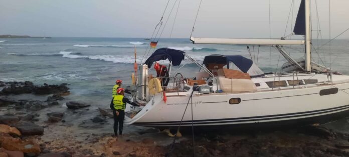 La embarcación varó en zona rocosa con cinco tripulantes a bordo, que fueron rescatados por el helicóptero Helimer 201, movilizado por el Centro de Coordinación de Seguridad en Las Palmas de Gran Canaria.