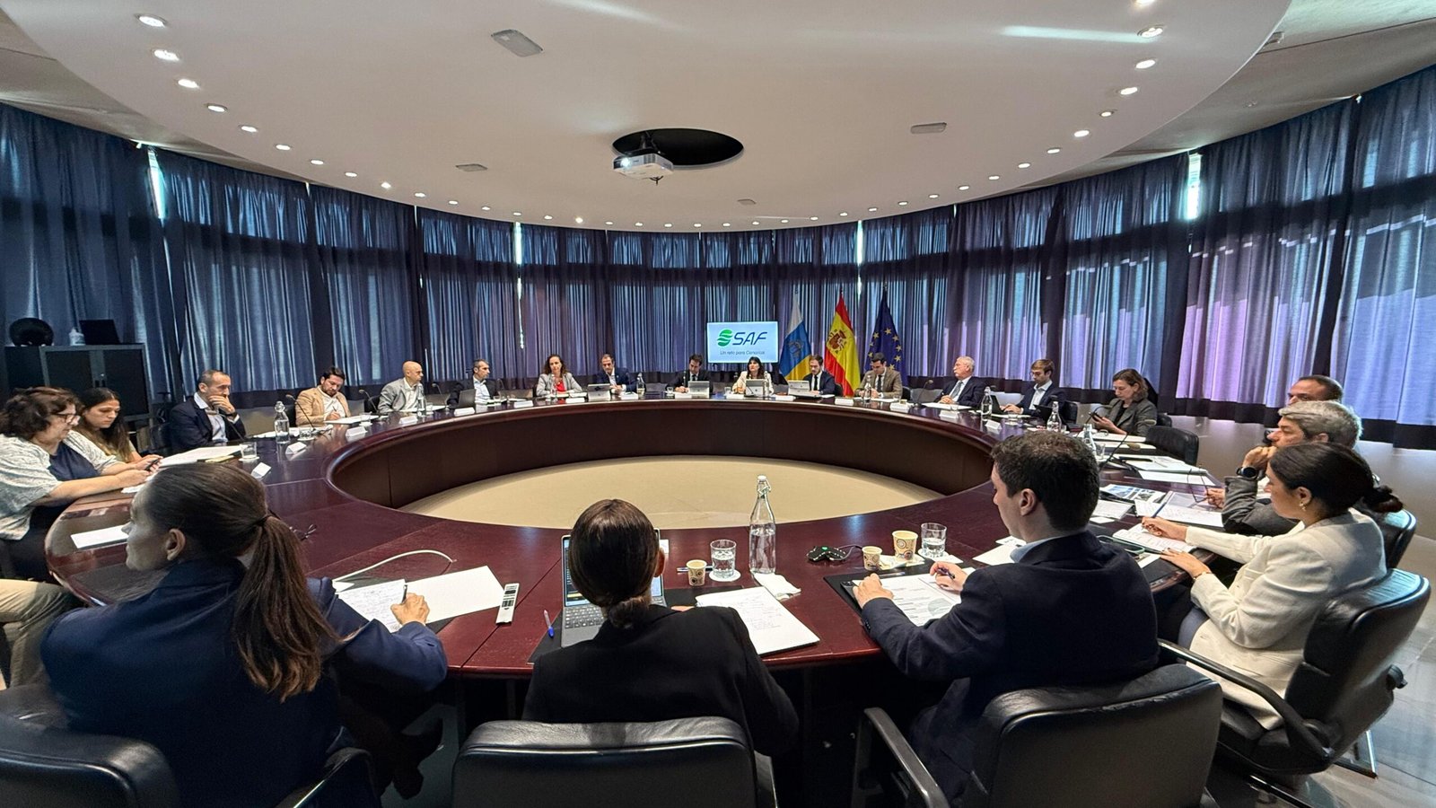El Gobierno de Canarias, a través de las consejerías de Transición Ecológica, Economía, Turismo y el Comisionado del REF, organizó una reunión con fabricantes de combustible para aviación respetuoso con el medio ambiente además de con representantes de líneas aéreas comerciales, donde se habló sobre el desarrollo industrial del SAF (Sustainable Aviation Fuel) en Canarias y tras la que se acordó crear una mesa de trabajo permanente para ello.