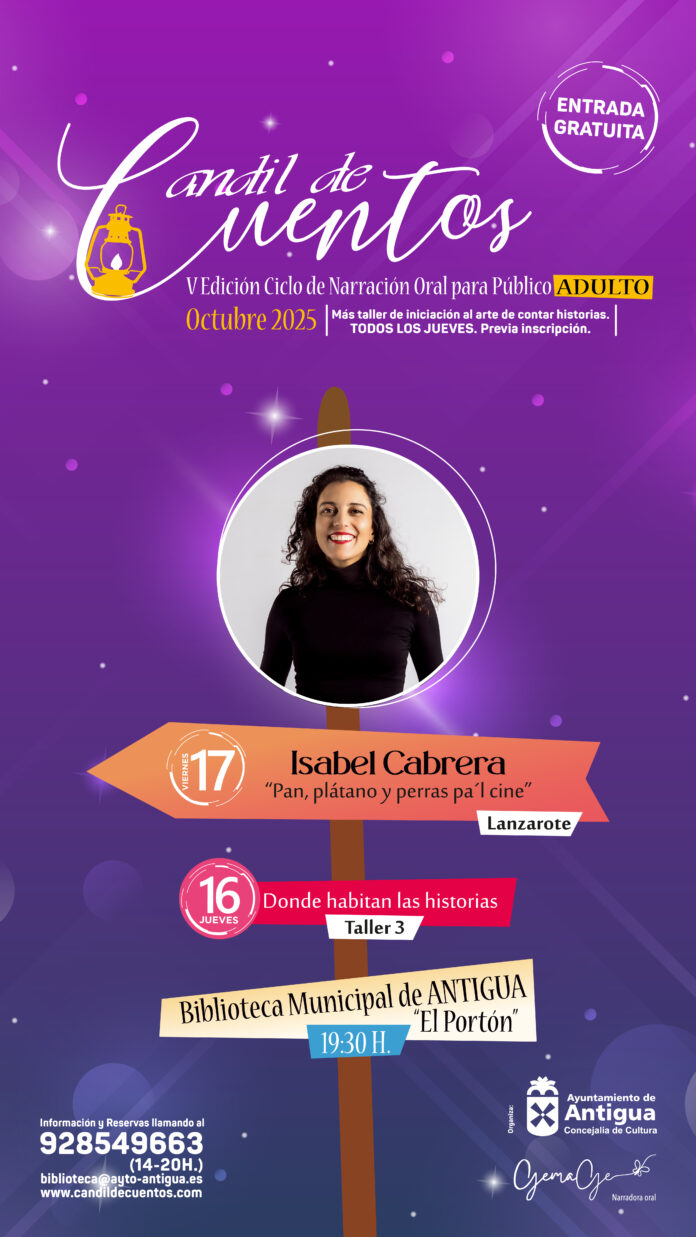 De Lanzarote llega la narradora Isabel Cabrera a contarnos historias de Pan, plátano y perras pa’l cine.