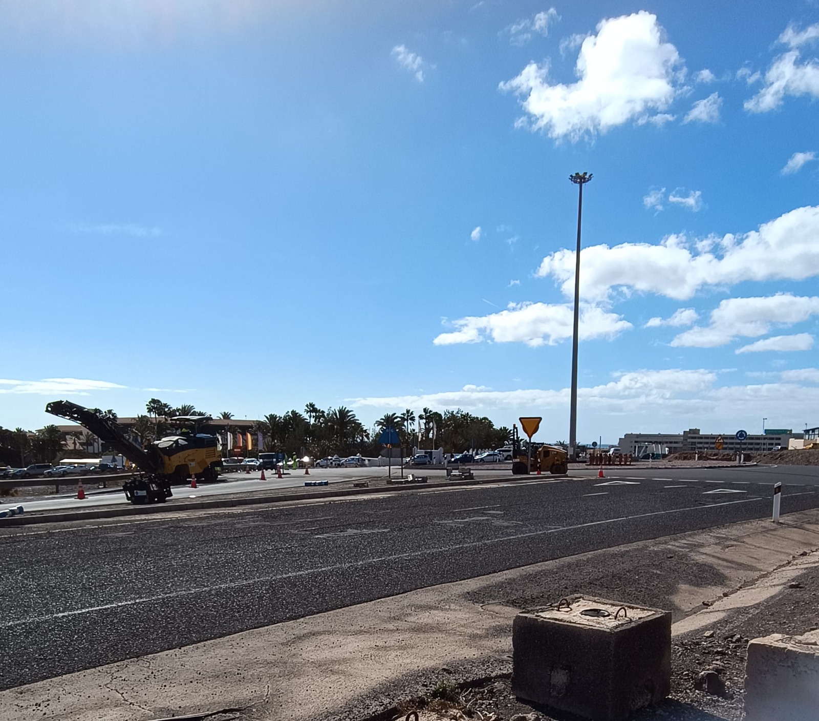 El Cabildo de Fuerteventura, desde el servicio de Carreteras, ha iniciado hoy los trabajos de asfaltado y reposición de señales de tráfico y elementos de seguridad vial en ocho kilómetros de la FV-2, entre Pecenescal y la glorieta de Las Gaviotas (la rotonda con esculturas de niños). Se trata de uno de los tramos más transitados de la isla y por ello registra un desgaste superficial generalizado que ahora se corregirá.