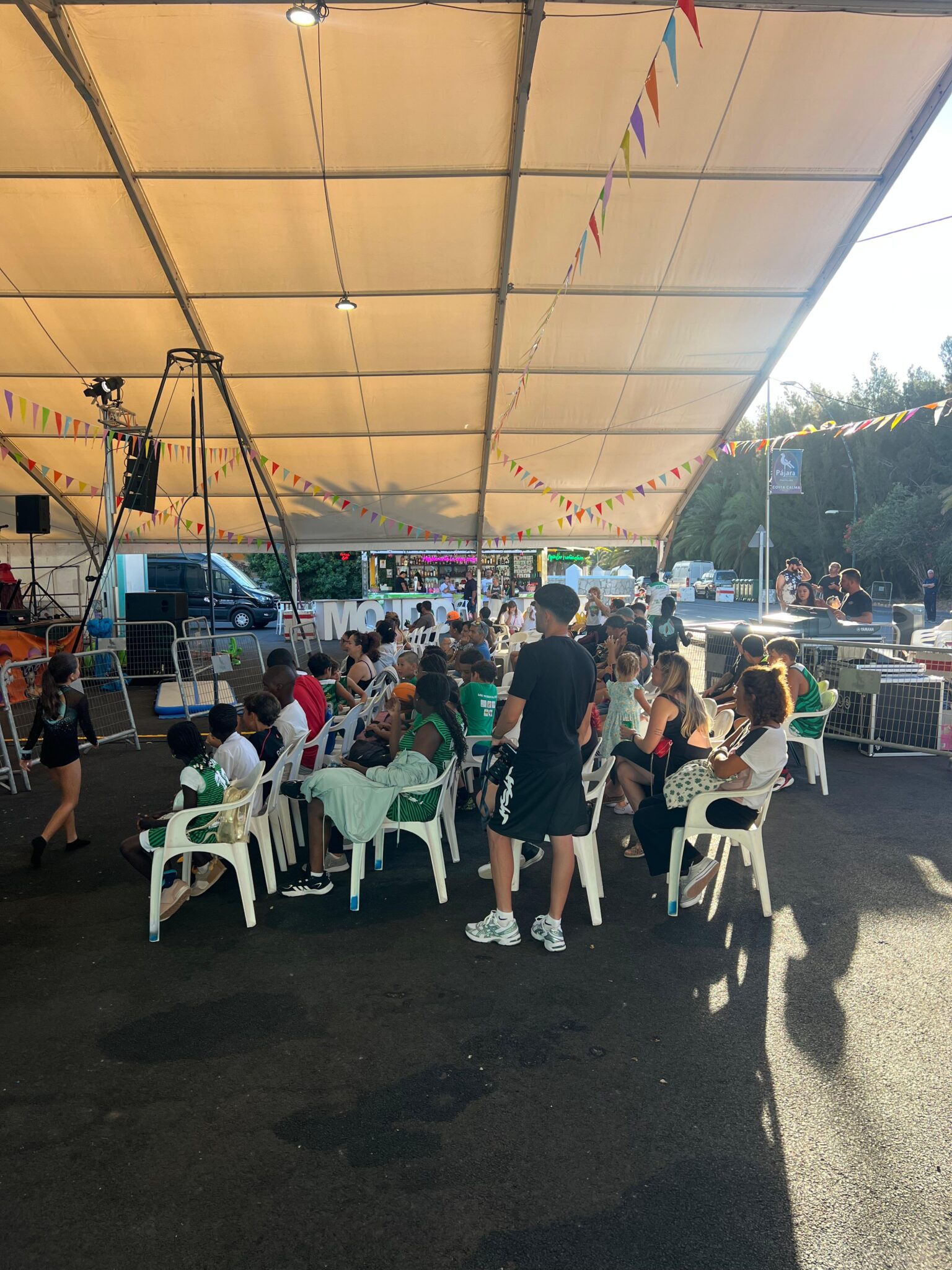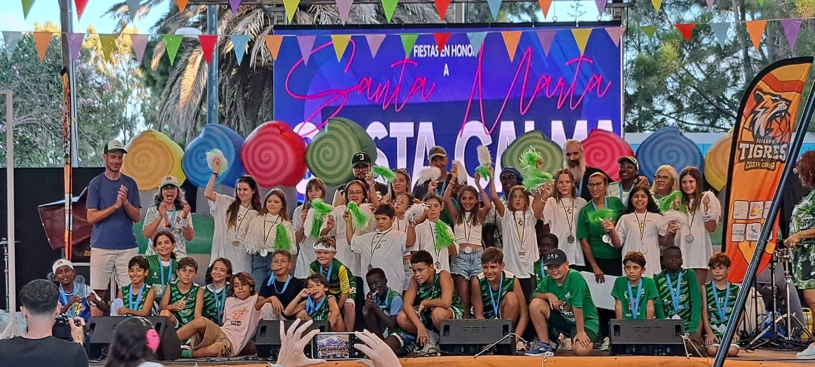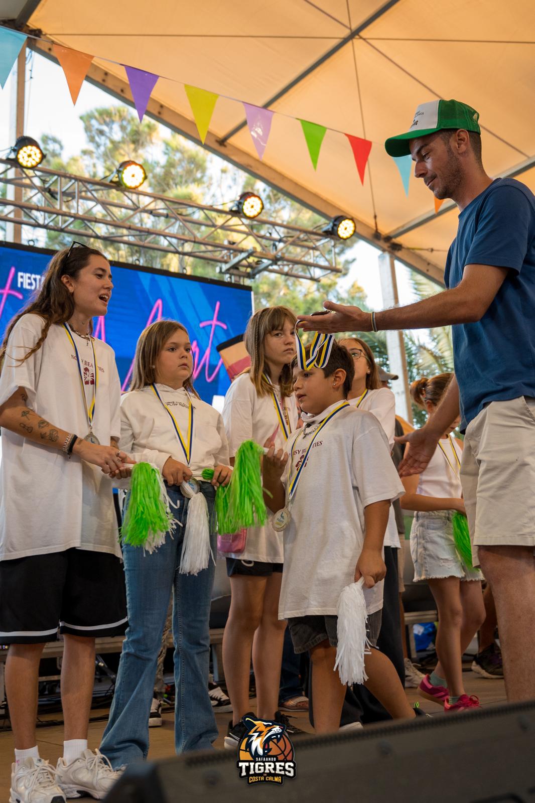 Desde las 15:30 horas, el público disfrutó de intensos encuentros de baloncesto 5×5 y 3×3, donde la energía y el espíritu de equipo fueron protagonistas. La apertura oficial estuvo marcada por un vibrante show artístico de Noisy Beauties by Narayza Montañez, junto a Los Tigres de Costa Calma, que puso al público en pie con una mezcla de música, baile y color.