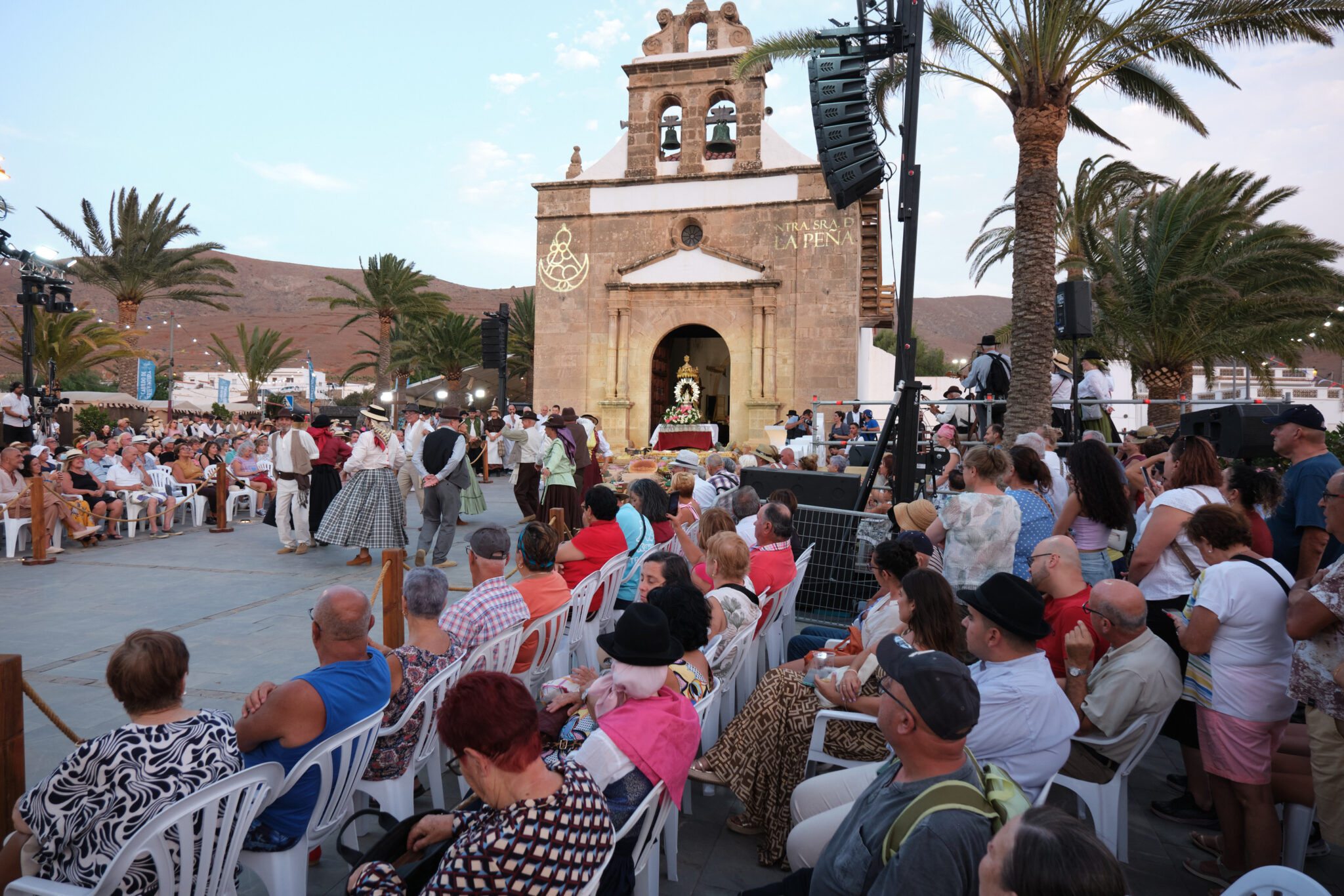 Peregrinos procedentes de todos los rincones de Fuerteventura han llegado hasta la Vega de Río Palmas, en el marco de las Fiestas en Honor a Nuestra Señora de La Peña. Como ocurre cada tercer fin de semana del mes de septiembre, el Santuario de la Virgen de La Peña acogió la tradicional ofrenda, con la participación institucional del Cabildo de Fuerteventura y los seis ayuntamientos, agrupaciones folclóricas y asociaciones vecinales.