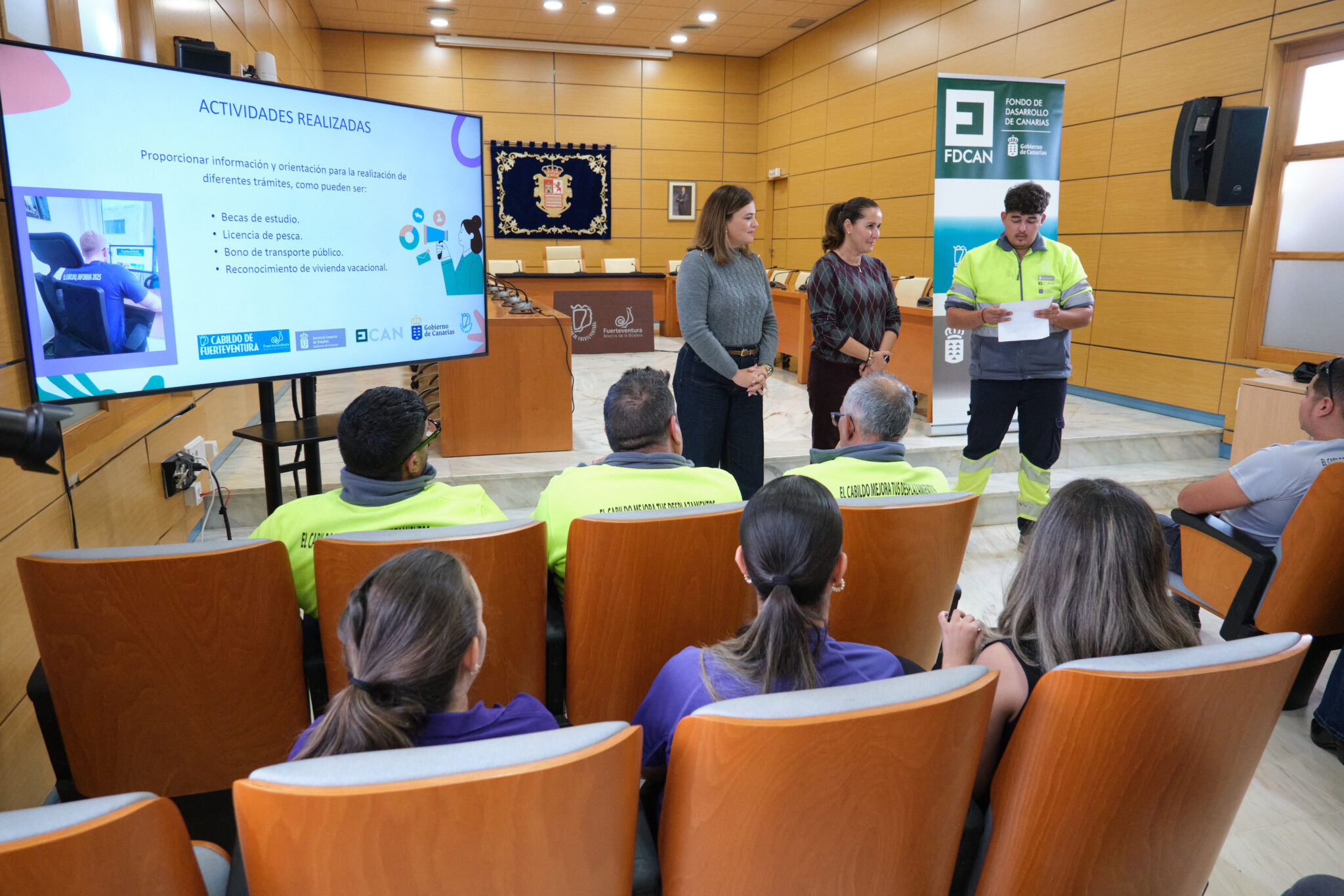 El Cabildo de Fuerteventura ha clausurado hoy los planes de empleo ‘El Cabildo mejora tus desplazamientos’ destinado a la mejora de infraestructuras de transporte regular de viajeros por todo el territorio insular y ‘El Cabildo Te Informa’, que ha tenido por objeto mejorar la atención en las oficinas de atención ciudadana a través de la contratación de personas con discapacidad. Unos planes de empleo que han ofrecido una oportunidad laboral a una veintena de personas durante un año.