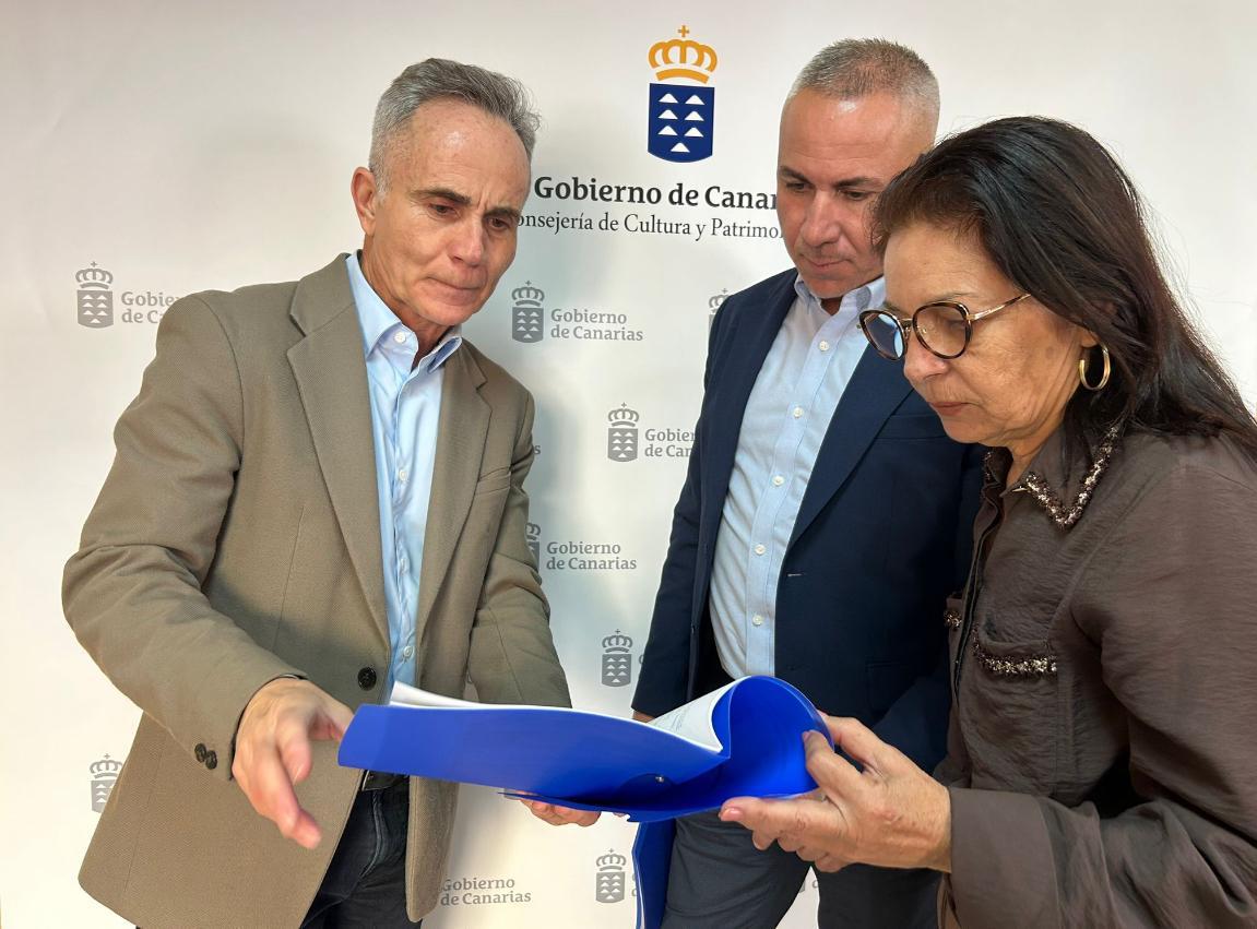 El concejal de Urbanismo del Ayuntamiento de Antigua, David Alberto Guerra junto a su compañera Victoria Cerdeña, responsable del área de Agencia de Desarrollo Local en el municipio, se reunieron con el viceconsejero de Cultura del Gobierno de Canarias, Horacio Umpiérrez Sánchez, para avanzar en la redacción del proyecto del futuro Centro Dotacional Integrado, una infraestructura destinada a dotar al municipio de un espacio estable que impulse y dinamice la actividad cultural, social y vecinal.