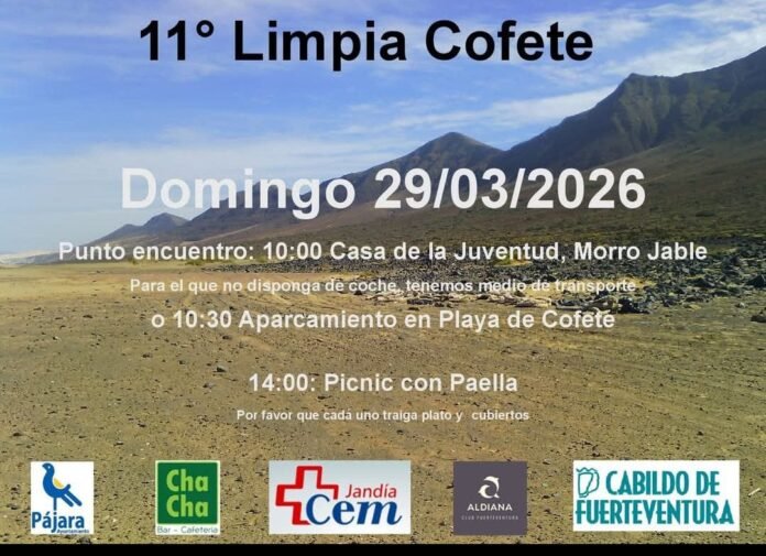 La cita será el domingo 29 de marzo de 2026 y contará con varios puntos de encuentro. Por un lado, a las 10:00 horas en la Casa de la Juventud de Morro Jable. Por otro, a las 10:30 directamente en el aparcamiento de Cofete.