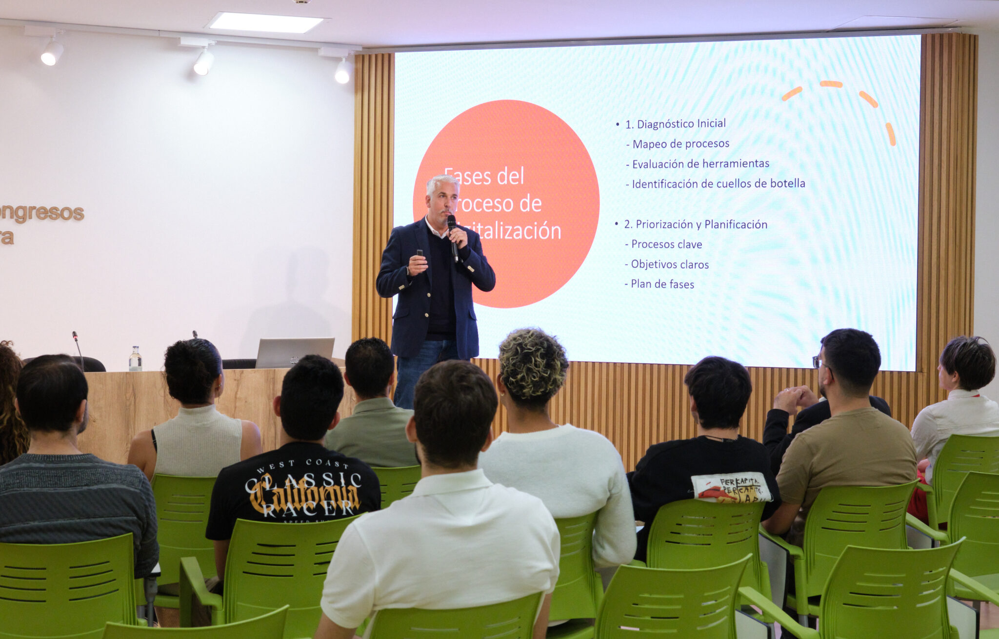 Oswaldo Brito comenzó las ponencias, detallando los pasos que deben seguir las empresas para su transformación digital, atendiendo a sus diferentes necesidades. “Cada organización tiene diferentes rutinas y modos de trabajar, por lo que deben empezar por identificarlas y poder planificar y seguir unos objetivos claros dentro del proceso de digitalización”.