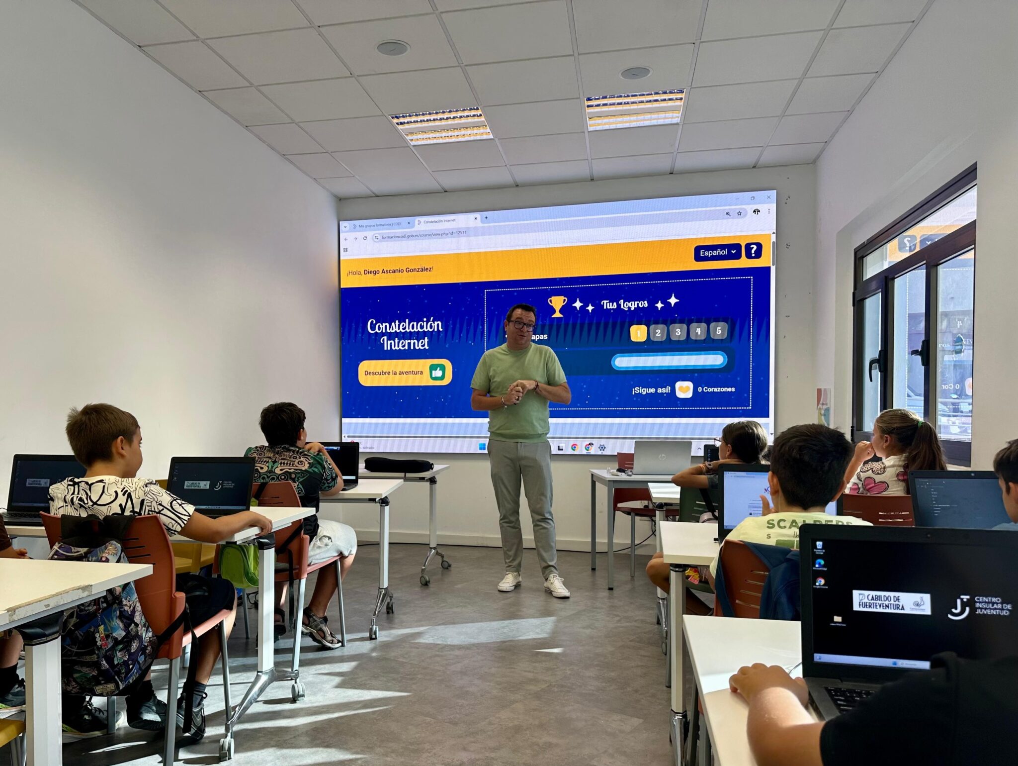 El Cabildo de Fuerteventura, a través de las Consejerías de Educación y Juventud, así como el área de Cultura, ha iniciado los Campamentos Digitales. Un programa gratuito de actividades extraescolares que se imparte a 75 niñas, niños y adolescentes de entre 9 y 17 años, con el objetivo de fomentar las habilidades digitales de población joven y promover el uso responsable de las tecnologías. La iniciativa se enmarca en el convenio de colaboración suscrito con la Fundación Cibervoluntarios.