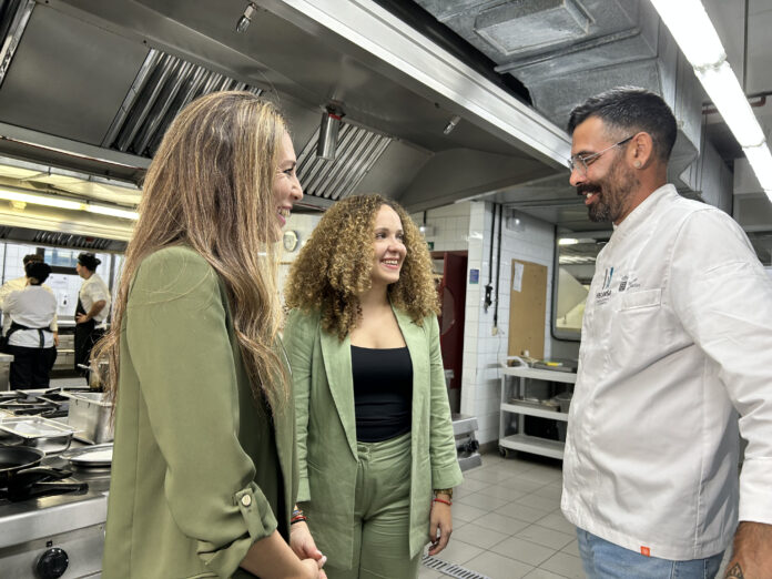 La consejera de Turismo y Empleo del Gobierno de Canarias, Jéssica de León, ha participado este martes en los talleres prácticos gastronómicos impartidos por los chefs canarios con estrellas Michelín, Abraham Ortega, José Luis Espino, Víctor Suárez, y el colaborador del proyecto de Recetas Marineras, Génesis Fernández. Esta formación está dirigida a más de 50 alumnos del programa de Gastronomía y Dirección de Cocina de Hoteles Escuela de Canarias (Hecansa), centro adscrito a la Consejería.