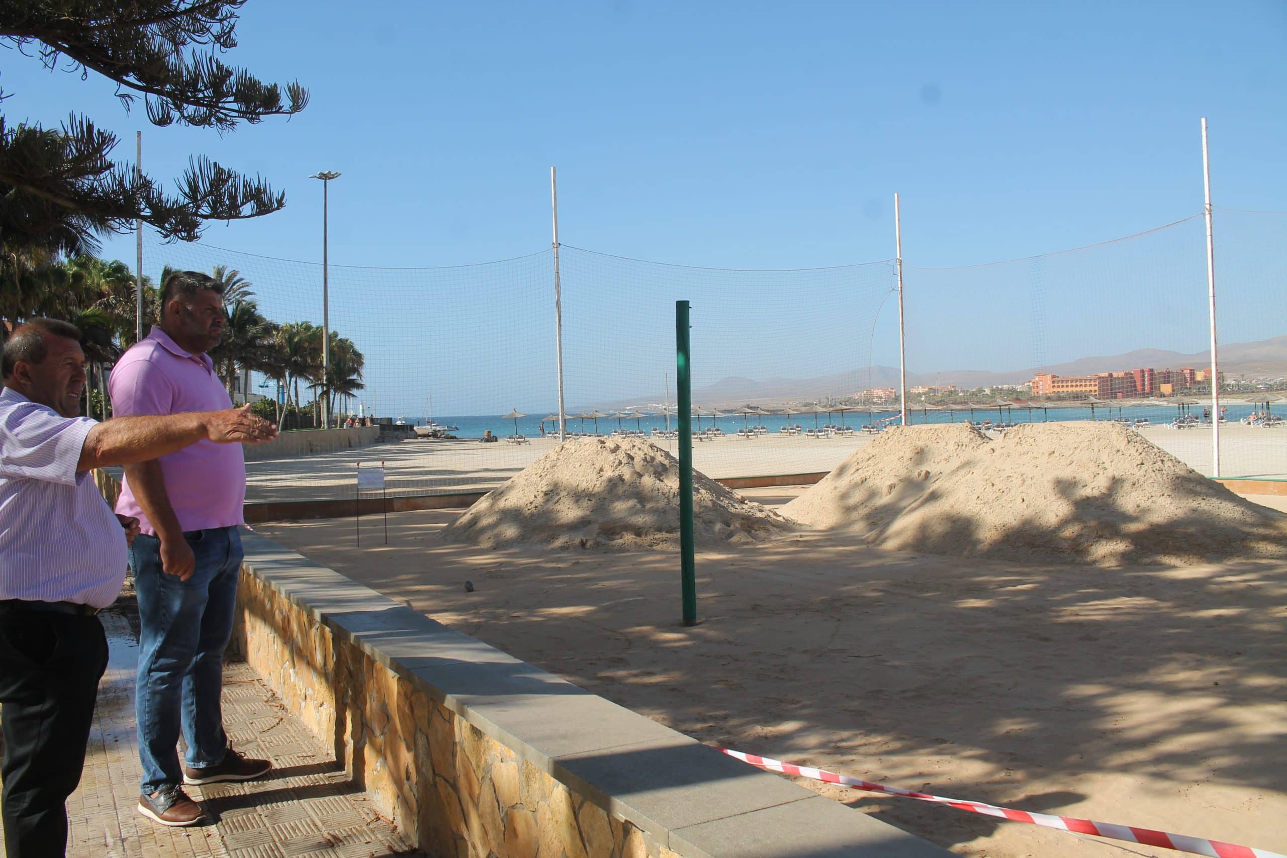El alcalde, Matías Peña García, y el concejal de área, Samuel Torres Mesa, han visitado la actuación, comprobando que se acondiciona para su apertura inmediata, uno de los dos campos de juego que dispone la cancha de Vóley Playa.