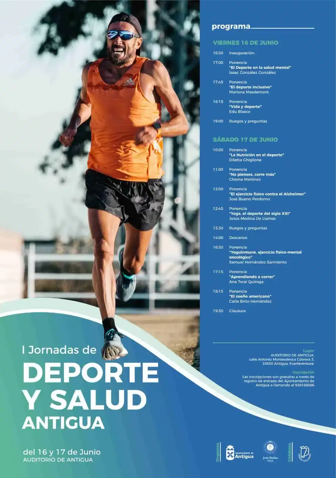 El Ayuntamiento de Antigua desde la concejalía de área, organiza estas Jornadas de Deporte y Salud, protagonizada por deportistas de élite y reconocidos profesionales sanitarios especialistas en la repercusión del deporte, señala el alcalde, estas jornadas son el broche de final de temporada de un trabajo desarrollado en el Municipio para fomentar el deporte, las prácticas saludables, obteniendo resultados como un mayor número de deportistas inscritos en actividades, y duplicar el número de asociaciones y clubs deportivos registrados en el Municipio.