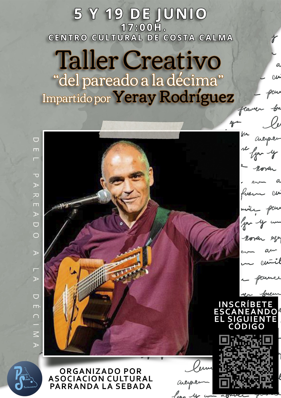 Yeray Rodríguez, referente en el arte de la décima y en la enseñanza del verso improvisado, guiará a los asistentes en una experiencia única para descubrir, crear y compartir versos desde la emoción, el ingenio y el ritmo.