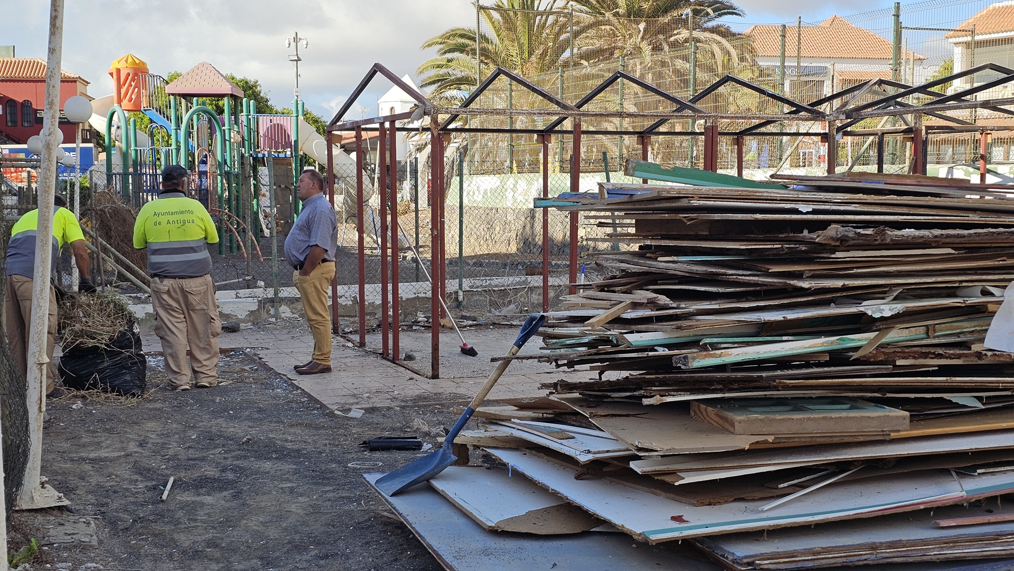 Operarios municipales, retiran varios camiones de escombros y la estructura de varias casetas viejas abandonadas que sólo propiciaban inseguridad en esta zona, señala el alcalde, que explica que el Ayuntamiento de Antigua esta redactando un proyecto que modifique, limpie y de uso a esta zona desde hace años excluida de los planes de modernización y mejora da la localidad de Caleta de Fuste.