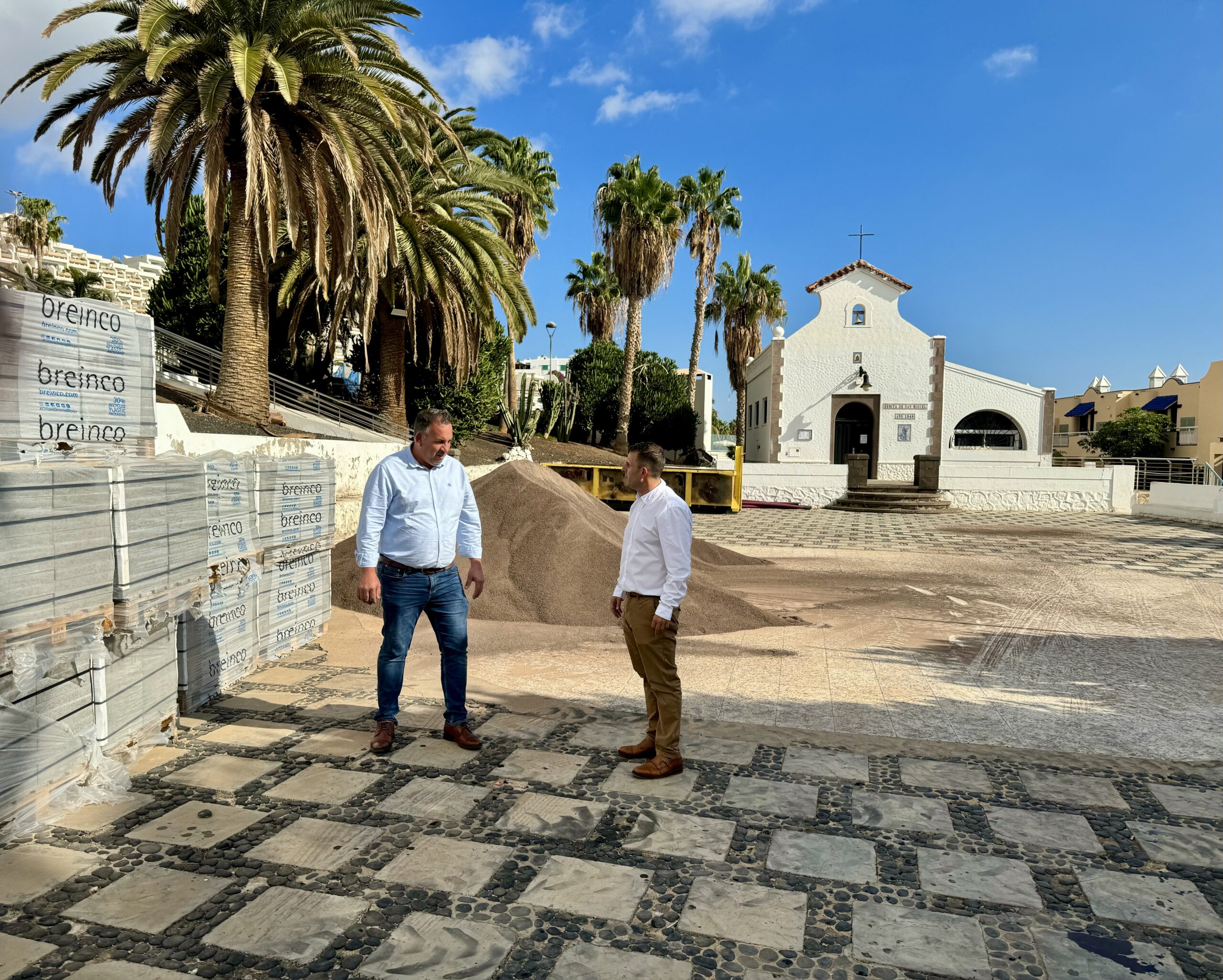 El Ayuntamiento de Pájara ha puesto en marcha las obras de remodelación de la Plaza de la Ermita de San Miguel y su entorno, en Morro Jable, unas actuaciones que afectarán a la Plaza San Miguel, la peatonal Miramar, la peatonal Las Gaviotas y a la Avenida de Jandía.