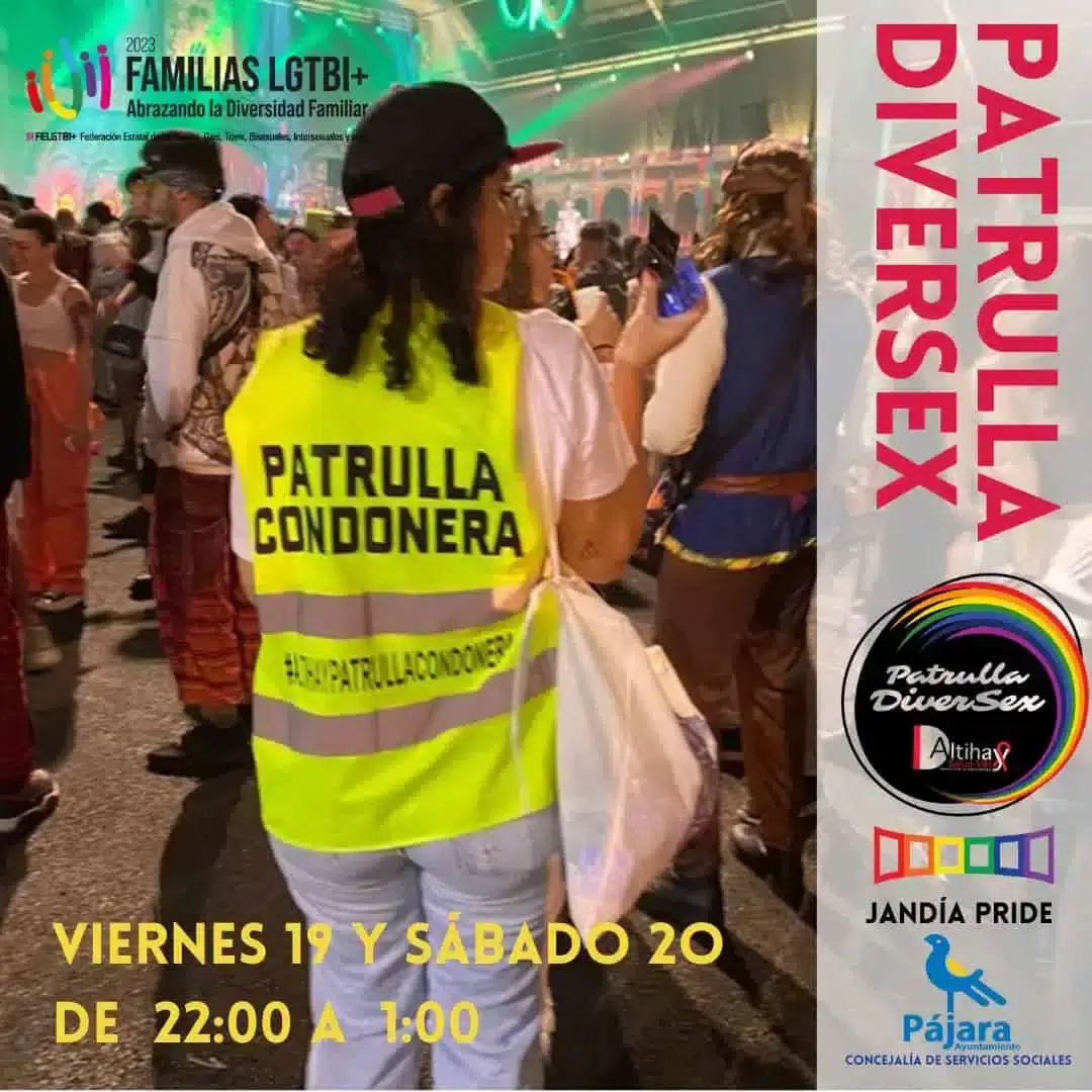Durante las noches del viernes y del sábado, en la Plaza de los Pescadores de 22:00 a 1:00 horas se realizarán actividades de concienciación sobre el uso del preservativo. Asimismo, habrá un pregón y una lectura de manifiesto y marchas por el pueblo, entre otras actividades para toda la ciudadanía presente.