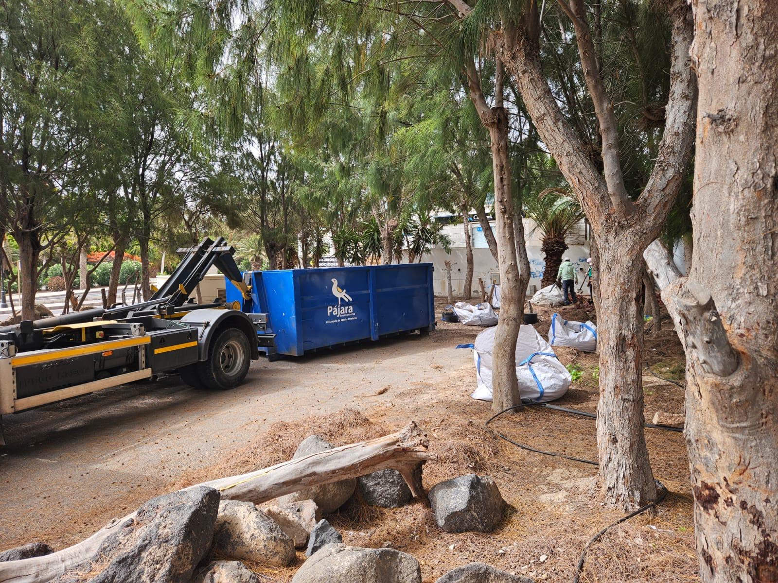 El primer teniente alcalde y concejal de Parques y Jardines, Alexis Alonso, ha explicado que «los trabajos realizados durante estos días en la zona han consistido mayoritariamente en la poda de palmeras y plantas, la recogida de pinocha, así como la limpieza de residuos y basura que se habían acumulado dentro de los jardines». «Estas acciones se han realizado para garantizar un entorno más limpio tanto para los residentes como para los visitantes», ha añadido. Además, ha señalado que estos trabajos se van a prolongar en el tiempo, ya que se continuará con las tareas de mantenimiento y mejora de las zonas de Costa Calma.
