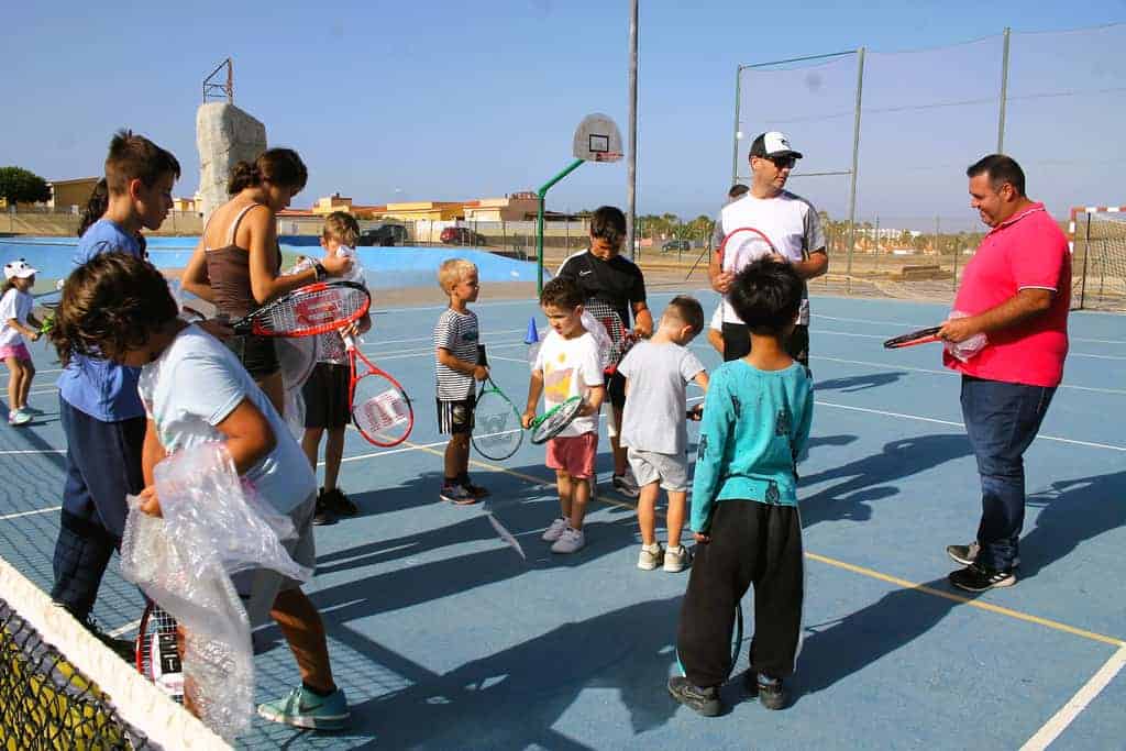 El Ayuntamiento de Antigua desde la concejalía de Deportes dota de material deportivo y equipación a las diferentes escuelas municipales y clubs deportivos, explica el concejal de área, Fernando Estupiñán, tras la entrega a las escuelas de atletismo, kárate, fútbol y lucha canaria, entre otras, llega el turno a la escuela municipal de Tenis que cuenta con una veintena de jóvenes deportistas que reciben sus clases en el Arena Sport Center de Caleta de Fuste.