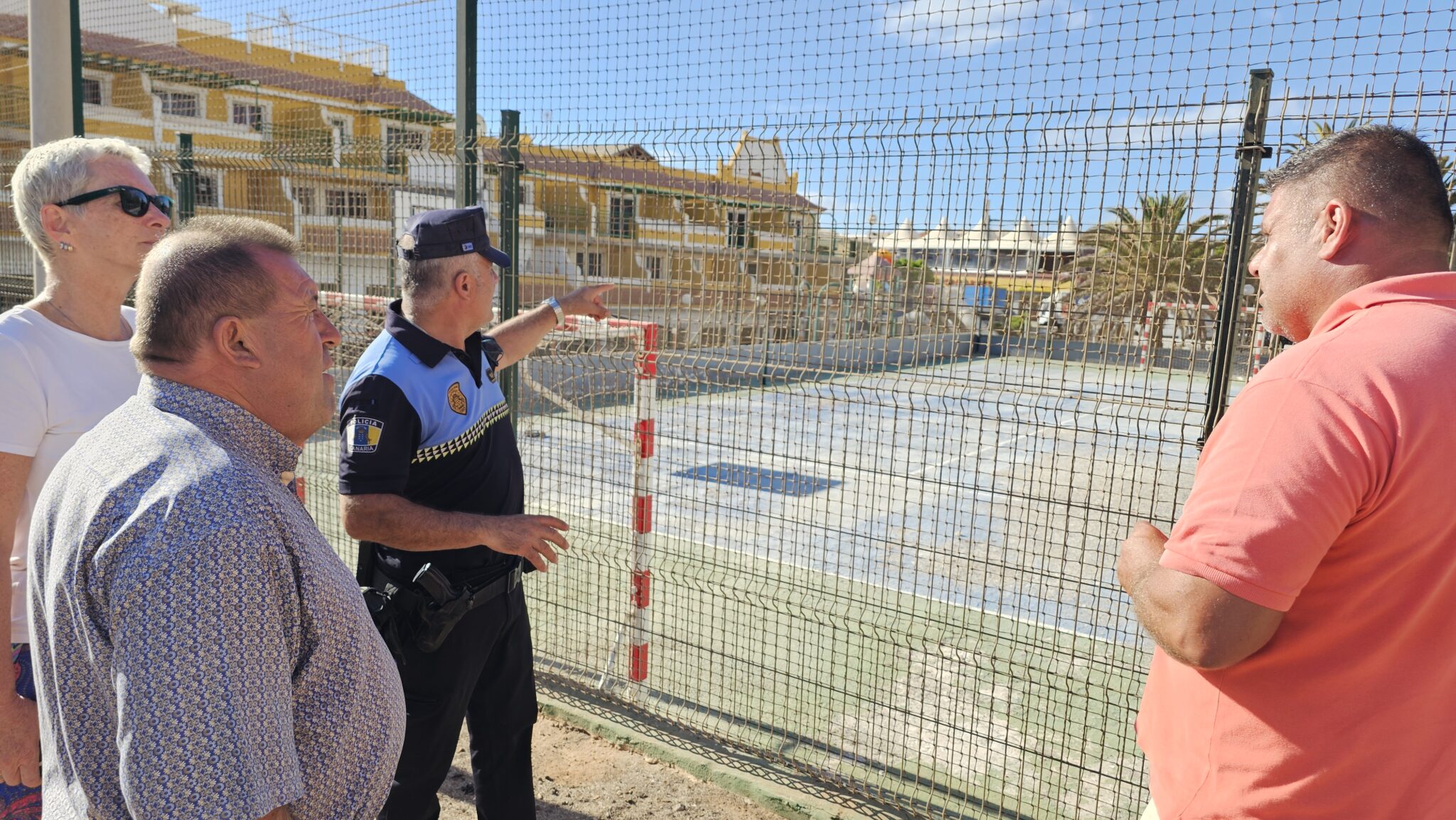 El alcalde ha visitado este emplazamiento junto con el concejal de Tráfico, Samuel Torres, la concejala de Turismo, Kristina Rodewig y el Subinspector Jefe de la Policía Local de Antigua, Domingo Fránquiz para coordinar y agilizar una pequeña y temporal actuación que permite su provecho por los vecinos y vecinas, a la vez que embellece y aporta seguridad al espacio acondicionado para aparcar o estacionar el vehículo.