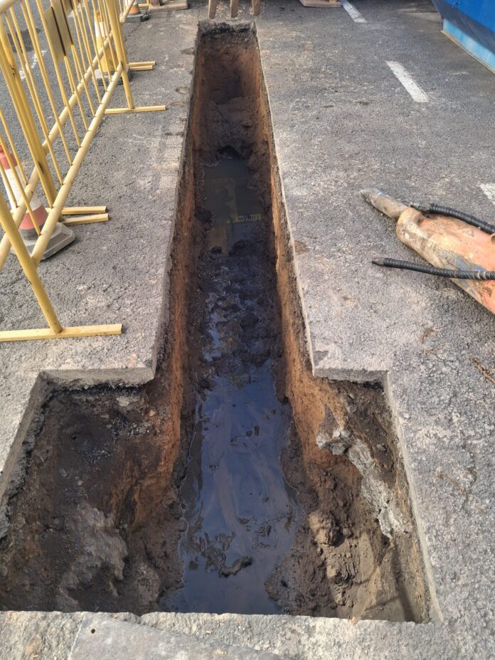 Operarios de la empresa Canaragua han tenido que intervenir esta semana en la calle Tajo tras detectarse una grave obstrucción en la red de saneamiento municipal provocada por la acumulación masiva de toallitas húmedas vertidas incorrectamente por los ciudadanos al inodoro. La incidencia ha obligado a realizar una zanja de aproximadamente seis metros de longitud para poder acceder a la tubería afectada y restablecer el servicio con normalidad.