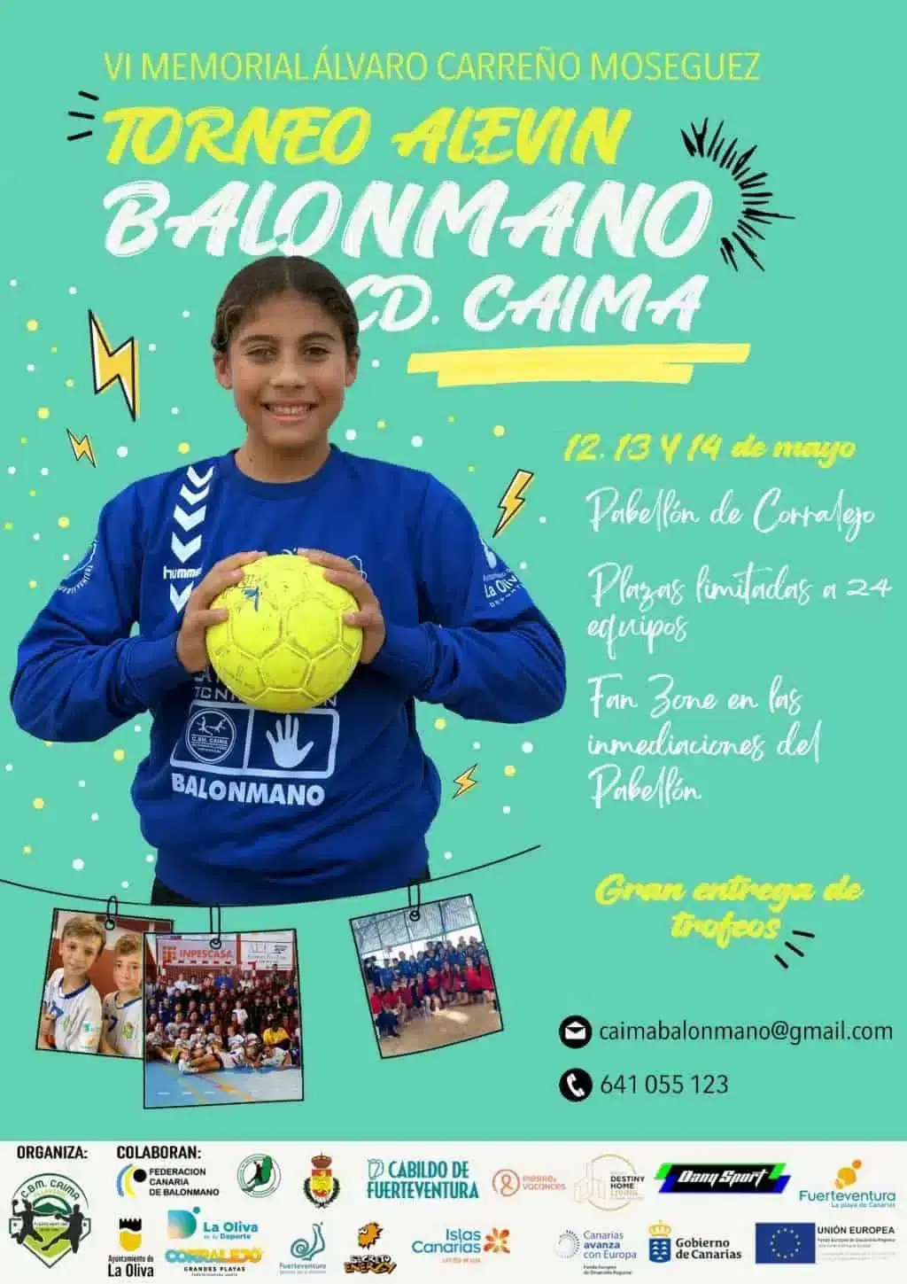 El Club Balonmano Caima Villaverde organizará del 12 al 14 de mayo el X torneo alevín Balonmano Caima, “VI Memorial Álvaro Carreño Moseguez”, y el miércoles 17 de mayo la segunda jornada de las MiniOlimpiadas “La Oliva Educa”, ambos eventos en la localidad de Corralejo.