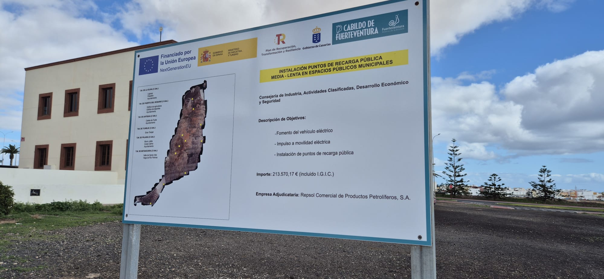 El Cabildo de Fuerteventura, a través de la Consejería de Industria, invierte 213.570,17 euros en la modernización de la red insular de recarga de vehículos eléctricos en todos los municipios. En el marco de este proyecto, la Corporación insular ha puesto este lunes en servicio cuatro nuevos puntos de recarga para vehículos eléctricos de 22 kW. Con esta nueva activación, la red pública de la Corporación insular cuenta ya con un total de 16 puntos de recarga activos.