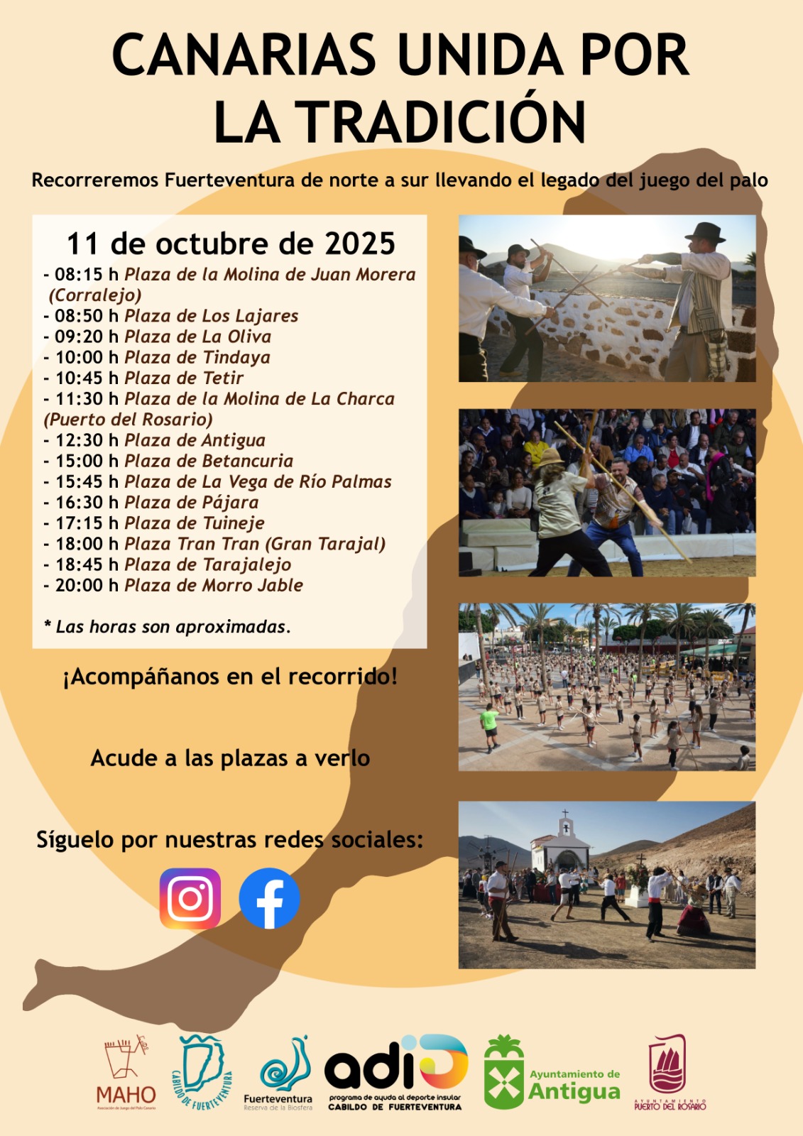 Tras el histórico Récord Guinness del 15 de noviembre de 2024, la Asociación Cultural MAHO presenta otro proyecto ambicioso, de arraigo y simbólico: “Canarias Unida por la Tradición”. Se trata de una carrera de relevos con el juego del palo canario que recorrerá 14 localidades de la isla en un solo día, el próximo sábado 11 de octubre, con la colaboración de la Consejería de Deportes del Cabildo de Fuerteventura.