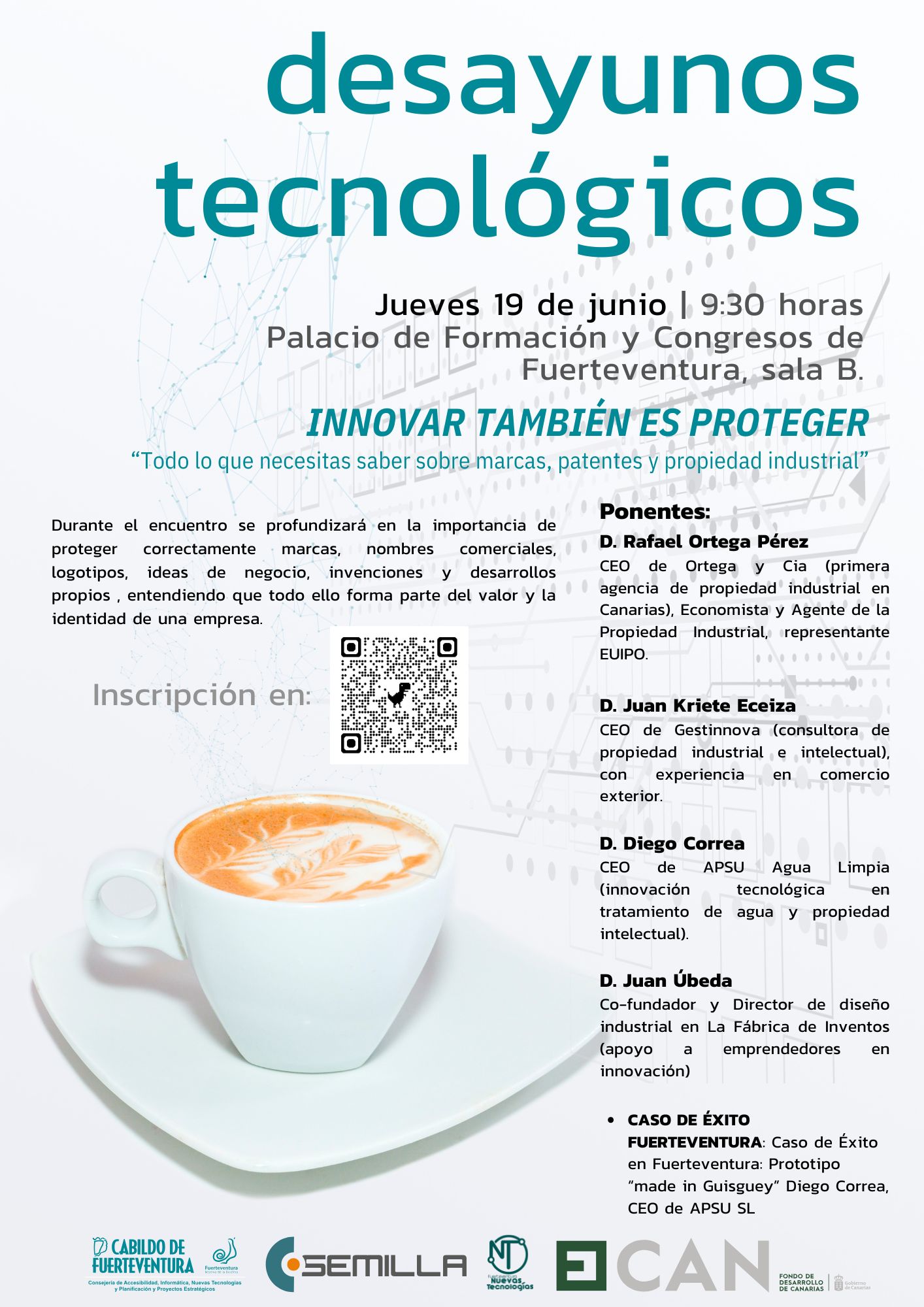 La sesión se celebrará el próximo miércoles 19 de junio, de 09.30 a 11.00 horas, en el Palacio de Congresos de Fuerteventura, bajo el título ‘Innovar también es proteger: Todo lo que necesitas saber sobre marcas, patentes y propiedad industrial’