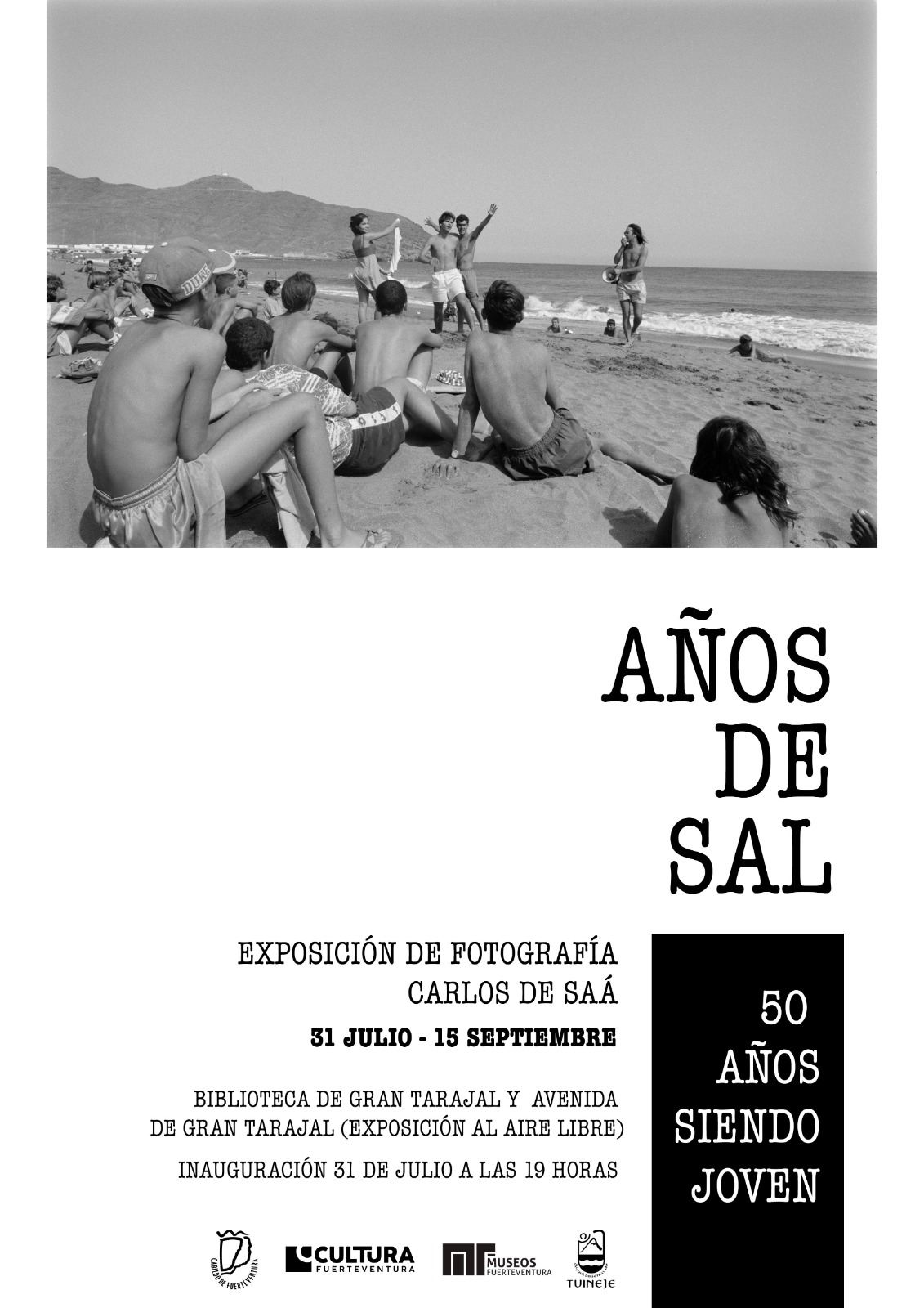 El Cabildo de Fuerteventura rinde homenaje a la Semana de la Juventud de Gran Tarajal con la exposición ‘Años de Sal: 50 años siendo jóvenes’. Promovida por Museos de Fuerteventura, la muestra se inaugura este jueves, 31 de julio, en la Biblioteca de Gran Tarajal, a las 19.00 horas.
