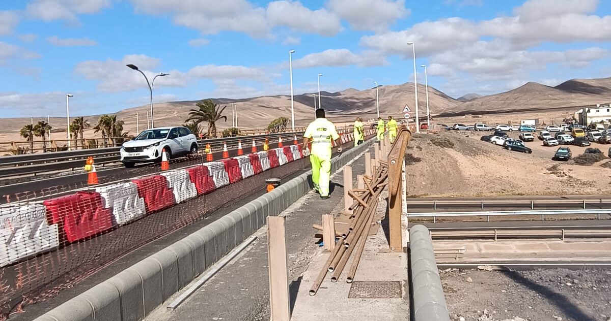 El Cabildo de Fuerteventura, desde el servicio de Carreteras, está realizando trabajos de mantenimiento y mejoras en el puente de acceso al aeropuerto de Fuerteventura, tanto para vehículos como para peatones. Según la presidenta insular, Lola García, dichos trabajos se acometen bajo criterios de seguridad y accesibilidad, de forma que el tránsito sea “fácil y cómodo”.