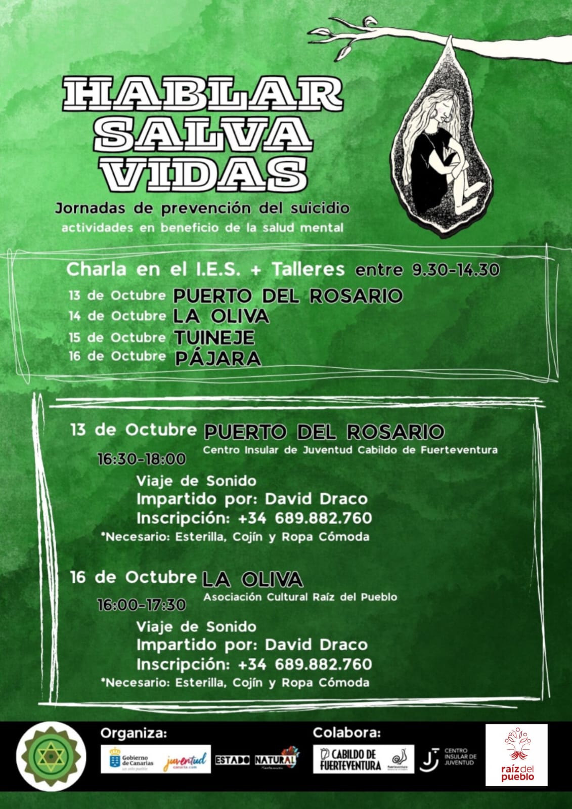 Durante cuatro días, ‘Hablar Salva Vidas’ contará con la participación de psicólogos, terapeutas y artistas, que abordarán temas como la gestión emocional, la autoestima y el arte como herramienta terapéutica en centros educativos de todo el territorio insular.