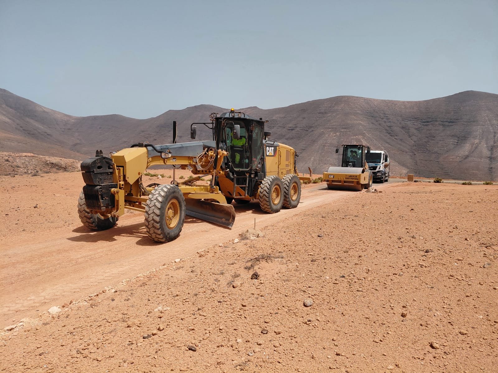 El Cabildo de Fuerteventura, desde el Servicio de Obras y Maquinaria, destina estos días uno de sus trenes de recebe a repasar la superficie de rodadura de las pistas de tierra que comunican los distintos enclaves, fincas y viviendas de La Matilla. El Cabildo de Fuerteventura, en colaboración con el Ayuntamiento de Puerto del Rosario, ha programado estos trabajos con su maquinaria especializada para recuperar la seguridad y confortabilidad de estas carreteras, afectadas por la acción del viento y la lluvia, además de por el tránsito de vehículos.