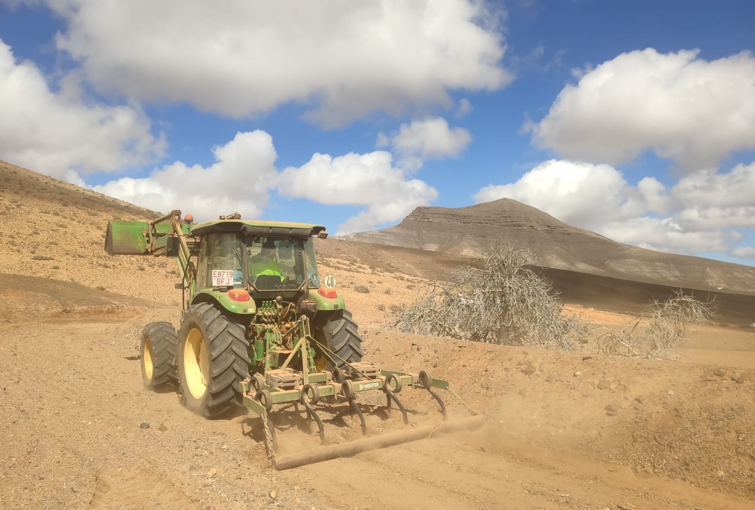 Esta semana, las labores se han iniciado en la zona de Tetir (Puerto del Rosario) con los sembradores y el trigo necesario para las plantaciones. Además, esta acción cuenta con el apoyo del área de Obras y Maquinaria con la aportación de tractores y este año la campaña se mejora con la incorporación, además, de una sembradora.