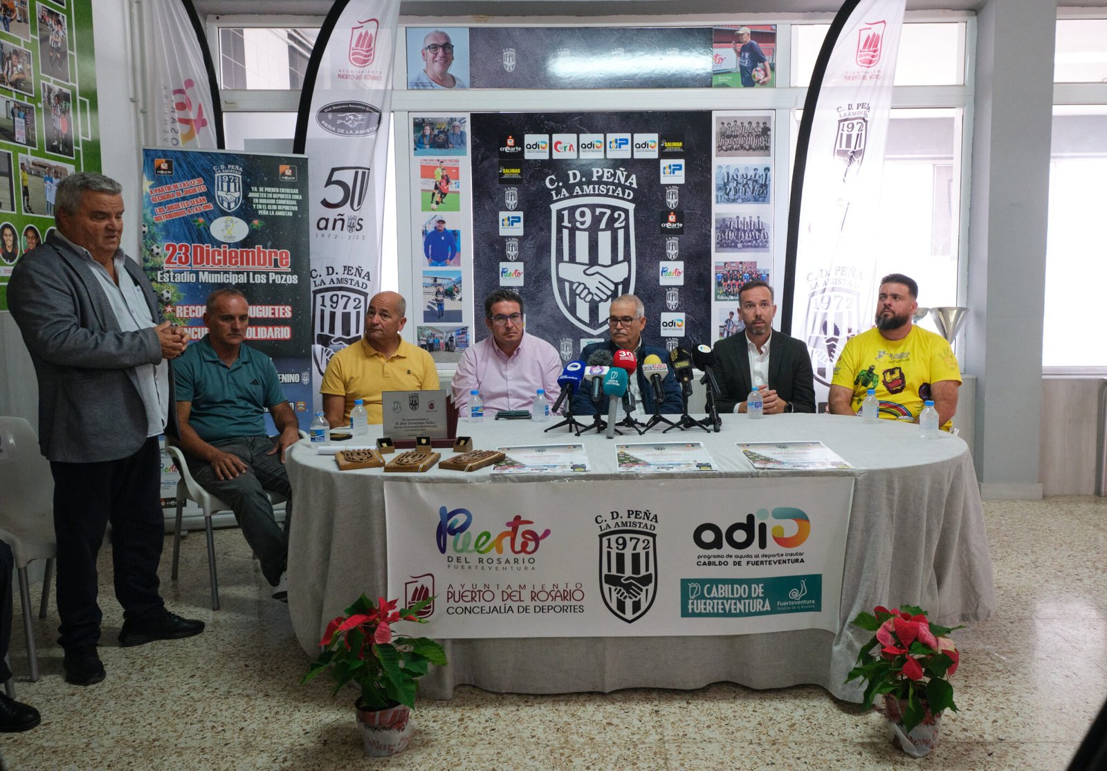 El Club Deportivo Peña de la Amistad ha presentado hoy su partido benéfico para recaudar juguetes para los niños y niñas más necesitados en el Día de Reyes. Un encuentro solidario que se celebrará el 23 de diciembre, a las 19.00 horas, en el Estadio Municipal de los Pozos.
