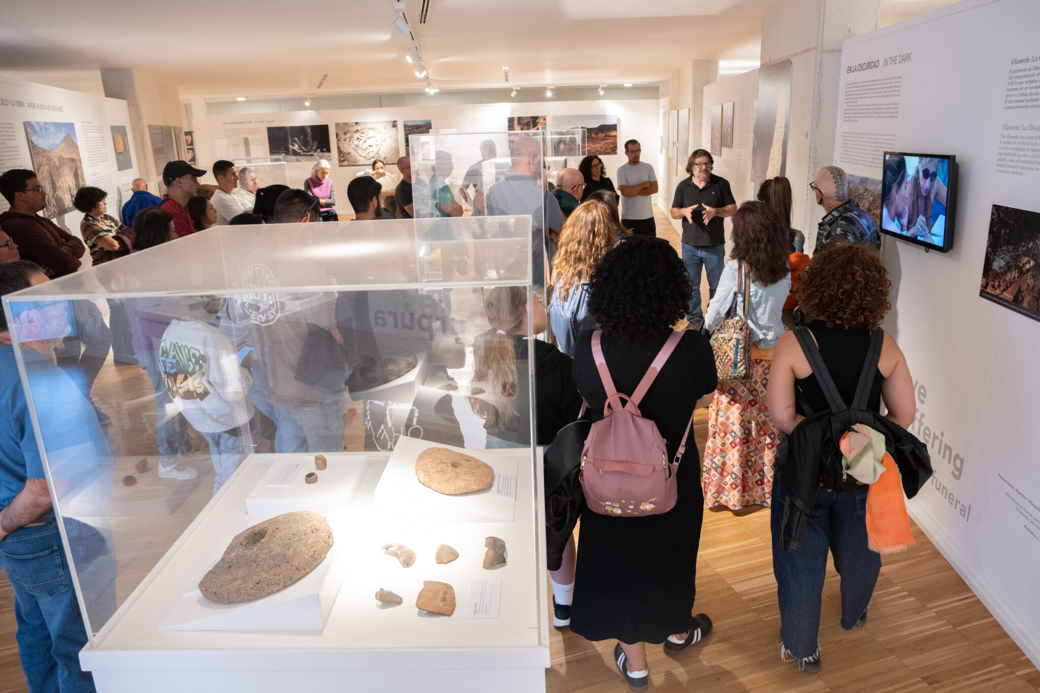 Rosa López, arqueóloga, ha realizado varias campañas de excavaciones en la Cueva de Villaverde (La Oliva). Este yacimiento, descubierto durante la realización de unas zanjas en 1979, es uno de los yacimientos más estudiados de Fuerteventura. Su registro arqueológico, fundamental para entender los distintos paneles expositivos del museo, incluye restos óseos humanos, cerámicas, punzones etc. Sus explicaciones permitieron entender la importancia de una cueva que fue el primer espacio donde se hallaron las primeras evidencias científicas de la práctica de la agricultura por los majos.