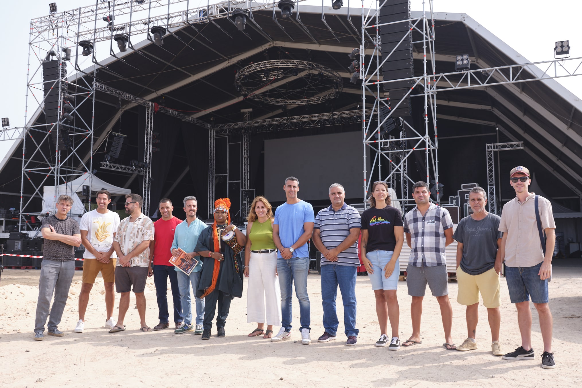 La presidenta del Cabildo de Fuerteventura, Lola García, ha visitado esta mañana el entorno del festival para comprobar los últimos preparativos de cara a su celebración. La primera regidora insular estuvo acompañada por el consejero de Cultura, Rayco León; el alcalde de La Oliva, Isaí Blanco, los concejales de Cultura y de Limpieza del Ayuntamiento, David Hernández Martín y Rubén González, respectivamente; así como los artistas Ara Queen of Drums, Saylén, Alejandro Frey de Abora Reggae, 5 Nclave, The Plunger Dixie Band y El Rincón de Tetir.