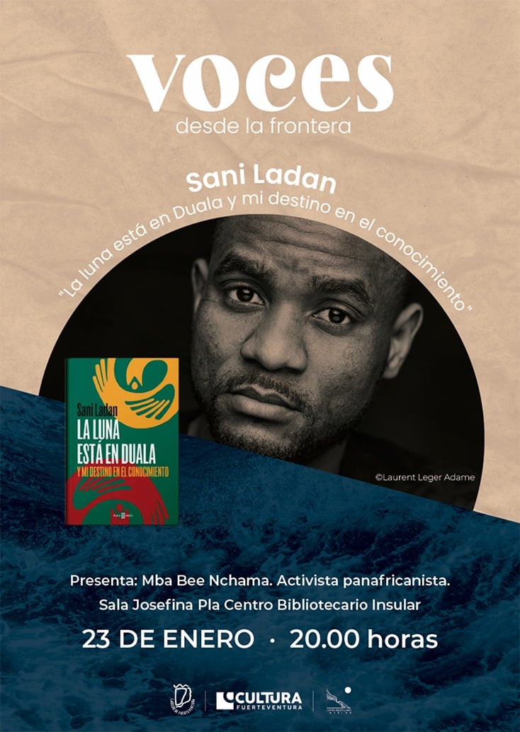 El escritor y activista Sani Ladan visita el próximo martes, 23 de enero, el ciclo ‘Voces desde la frontera’ donde presentará su libro ‘La luna está en Duala y mi destino en el conocimiento’, el relato en primera persona de un joven camerunés que se marchó de su hogar para alcanzar el sueño de formarse y estudiar. Será a las 20.00 horas en la Sala Josefina Plá del Centro Bibliotecario Insular.