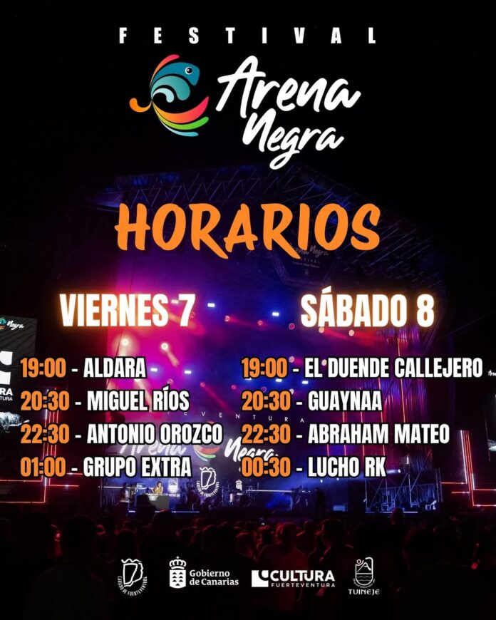 El Festival Arena Negra ha dado a conocer los horarios de sus conciertos, que contarán con más de una docena de artistas nacionales, internacionales y locales en la Playa de Gran Tarajal.