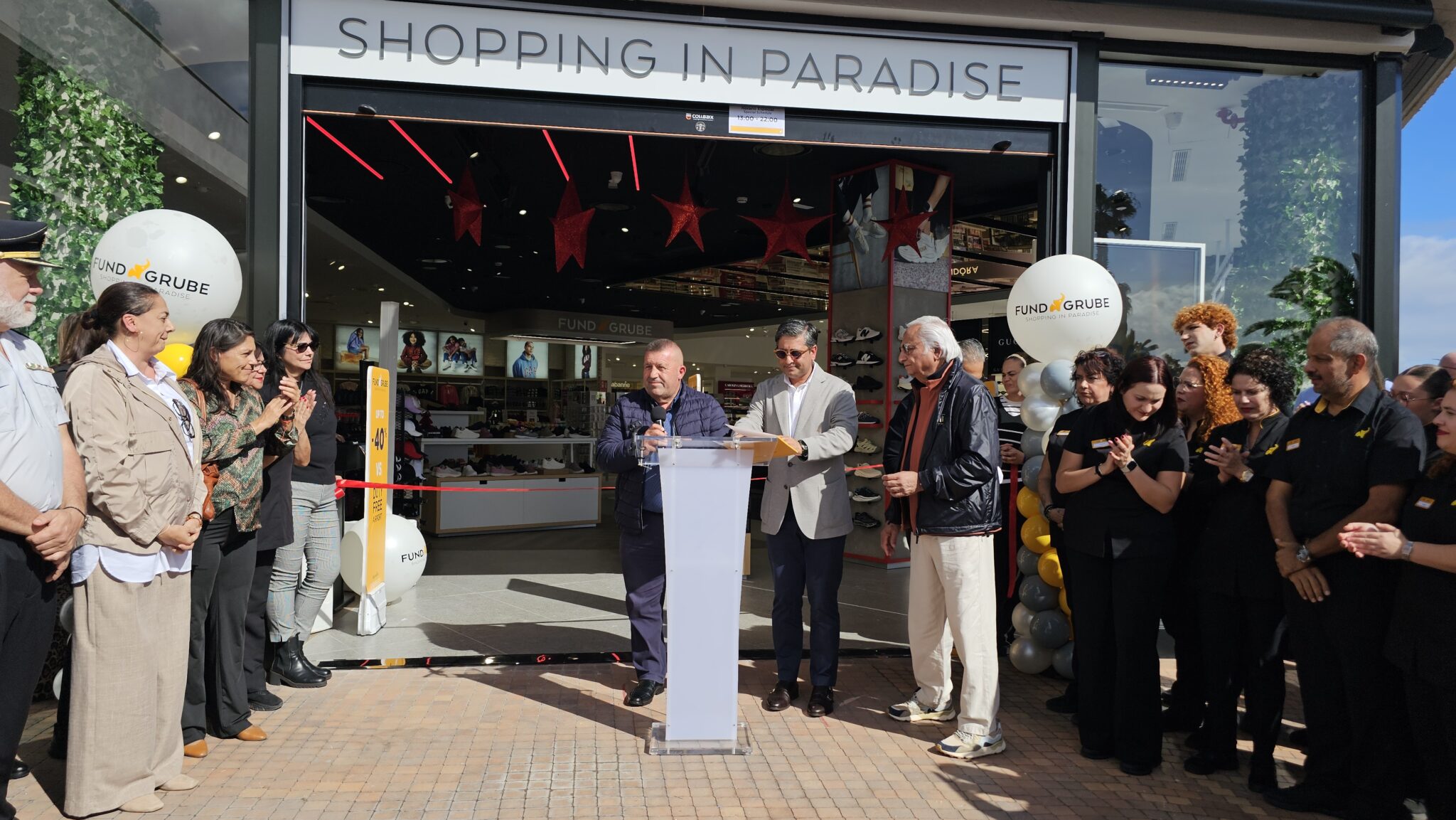 El alcalde de Antigua, junto con la representante del Cabildo de Fuerteventura, Nereida Calero, la Senadora, Paloma Hernández, y miembros de la Corporación Municipal, asistían a la apertura del nuevo centro comercial Fund Grube sobre una superficie de más de 900 metros cuadrados, con una inversión de 1,4 millones de euros, generando más de 20 empleos directos en tienda.
