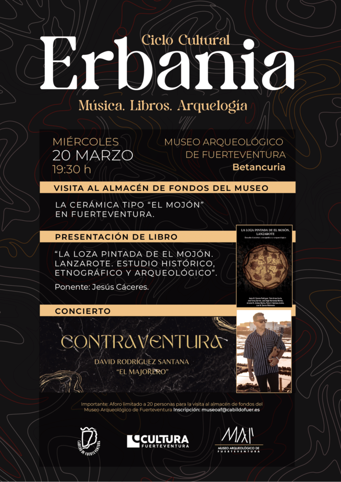 Museo Arqueológico de Fuerteventura pone en marcha el Ciclo Cultural Erbania, una programación que tiene como objetivo acercar a los visitantes a la arqueología, presentando en Fuerteventura las últimas publicaciones acerca de las culturas indígenas canarias, además de dar a conocer a los bienes muebles de la colección que custodia el MAF en sus fondos.