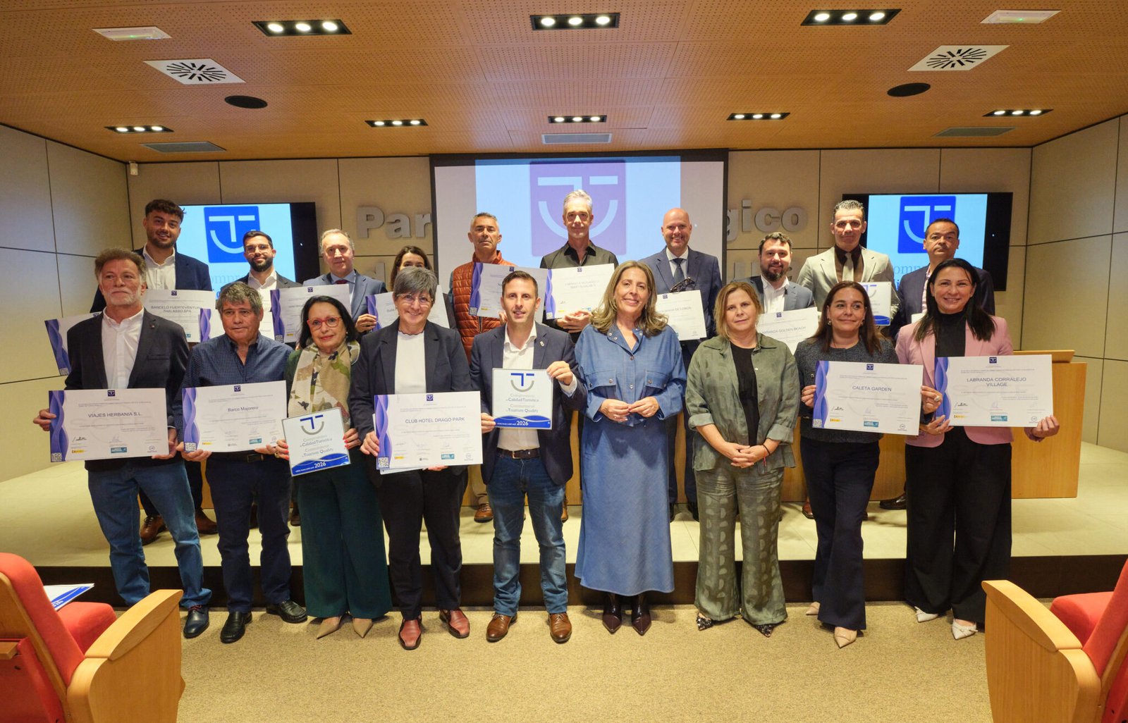 El Patronato de Turismo ha entregado en el día de hoy los diplomas y distinciones de Calidad Turística SICTED a una veintena de empresas y servicios turísticos de Fuerteventura, en un acto que tuvo lugar en el Salón de Actos del Parque Tecnológico.
