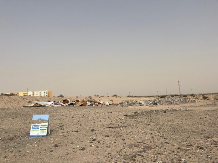 La parcela municipal de Costa Calma, rodeada por el colegio, la tenencia de alcaldía, el consultorio, el campo de futbol, la cancha multifunción y el parque infantil, ahora cuenta con un “punto limpio improvisado” en el centro.